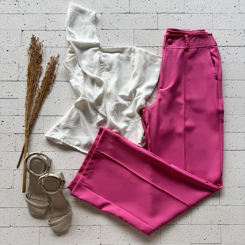 Como Usar a Calça Social Pantalona Alfaiataria com Vinco Pink