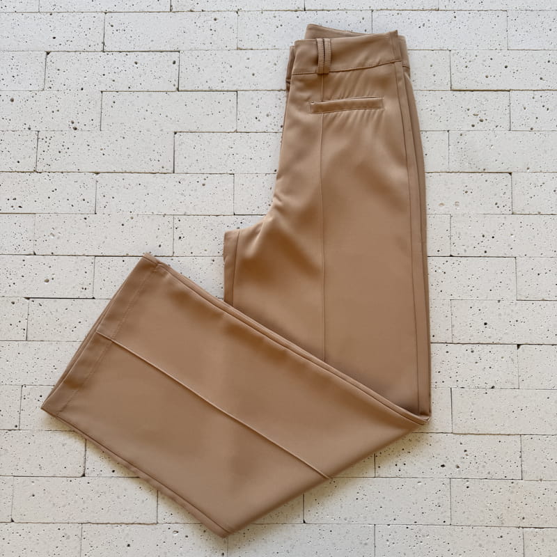 - Modelagem reta estilo pantalona, barra ampla