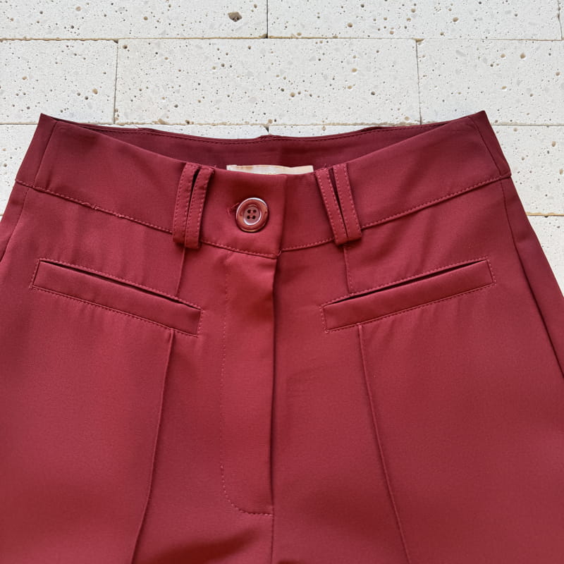 CALÇA SOCIAL PANTALONA COM VINCO E BOLSO FAKE MARSALA