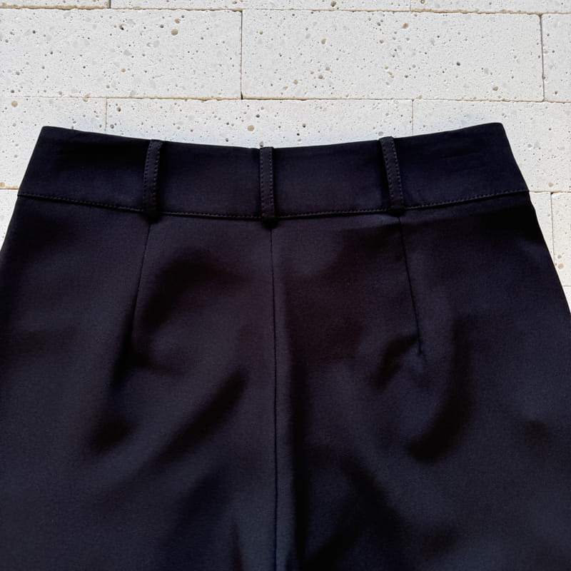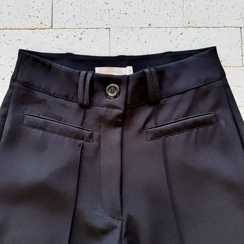 CALÇA SOCIAL PANTALONA COM VINCO E BOLSO FAKE PRETA