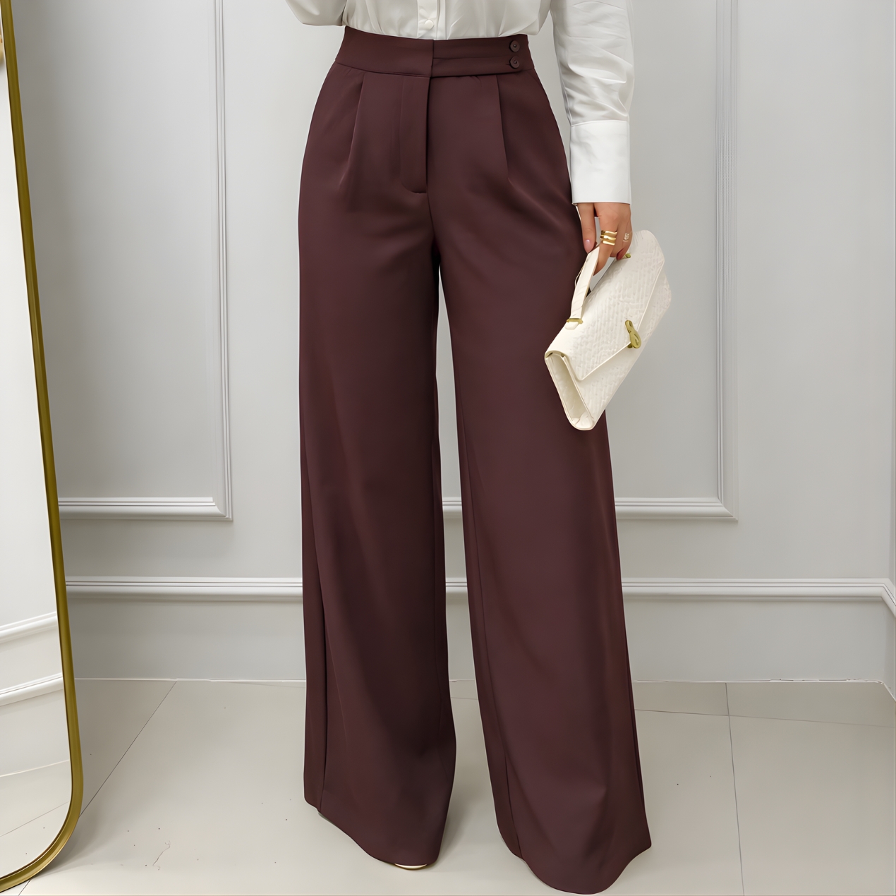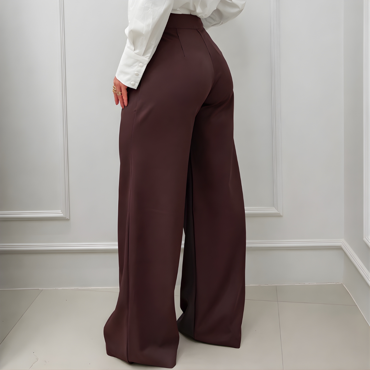 CALÇA SOCIAL PANTALONA DETALHE BOTÕES LATERAL CAFÉ – Alfaiataria Elegante e Atemporal