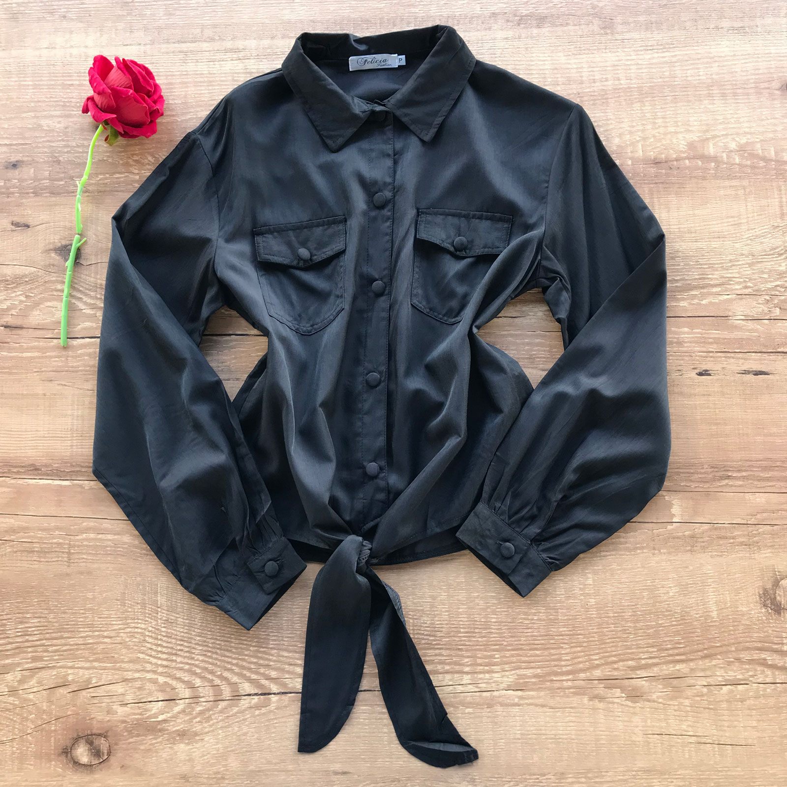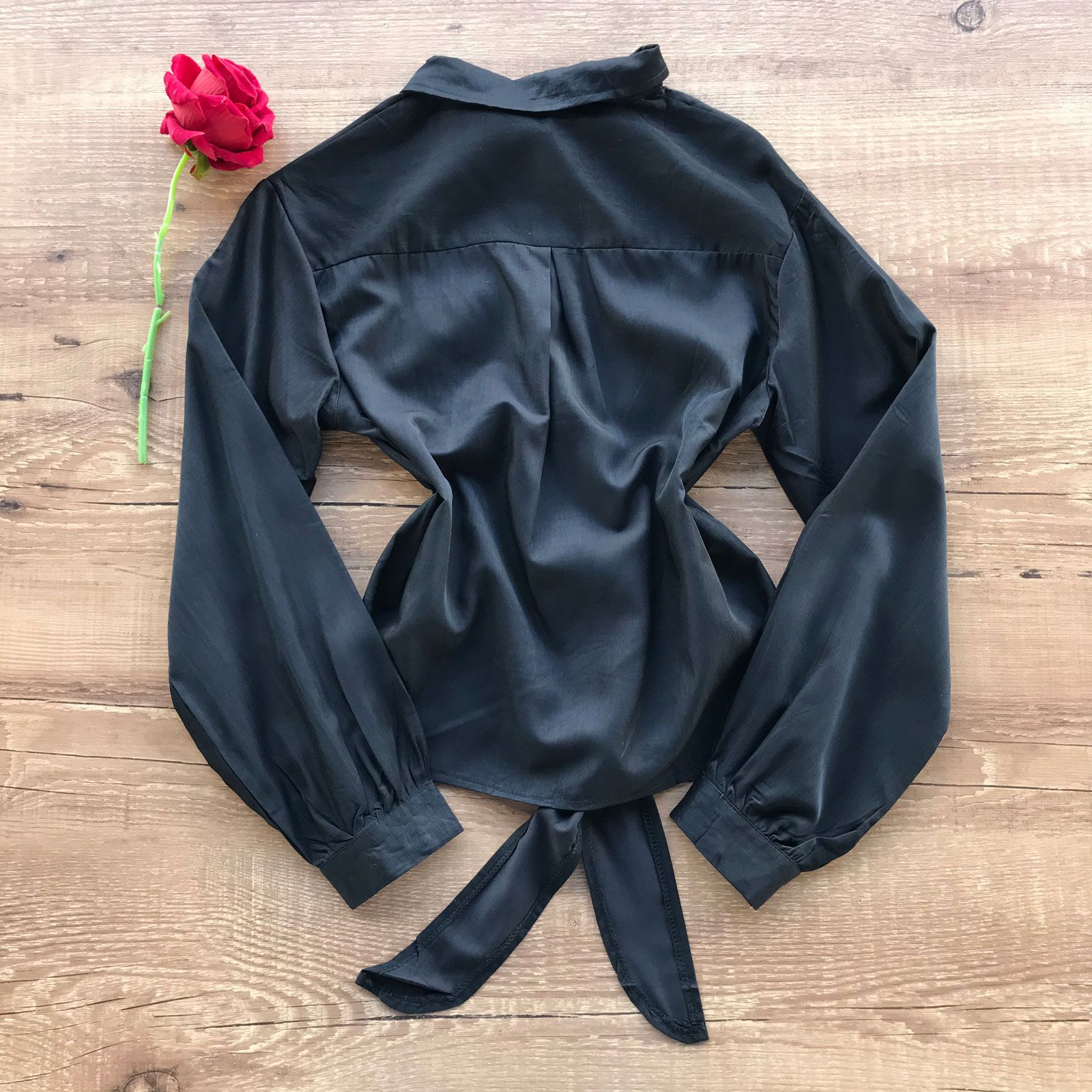 CAMISA ACETINADA DETALHE NÓZINHO PRETA