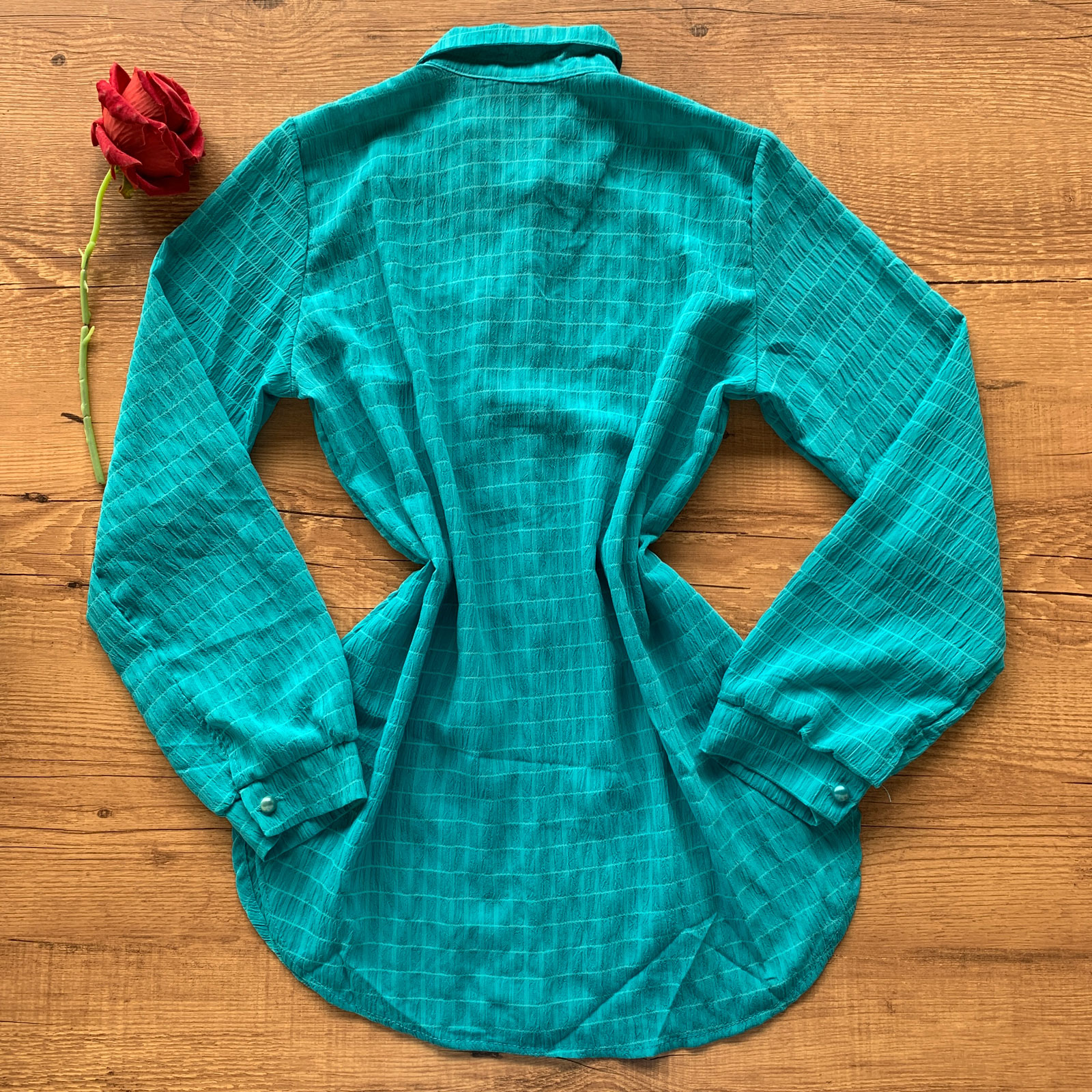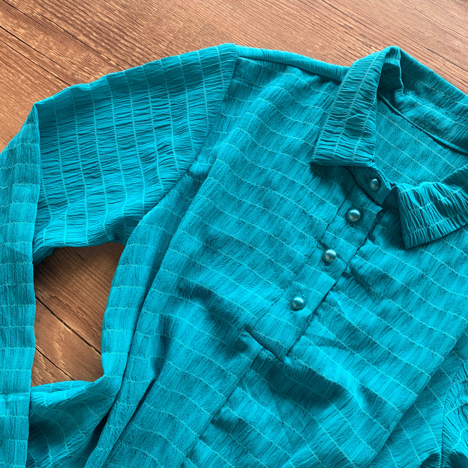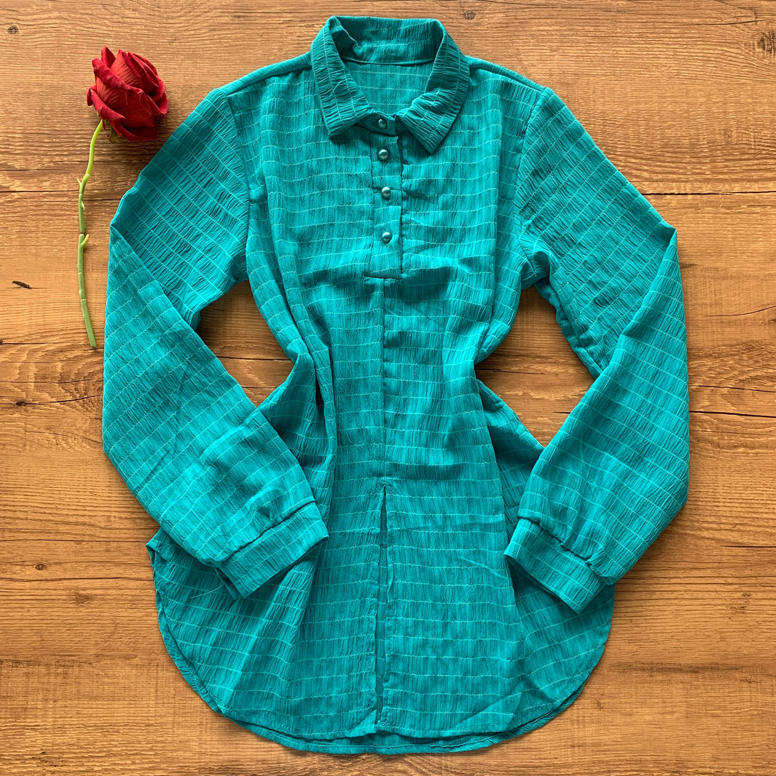 CAMISA ALONGADA TECIDO TRABALHADO TURQUESA