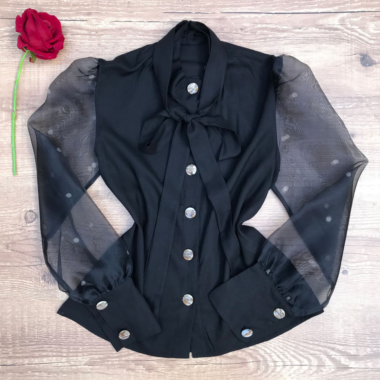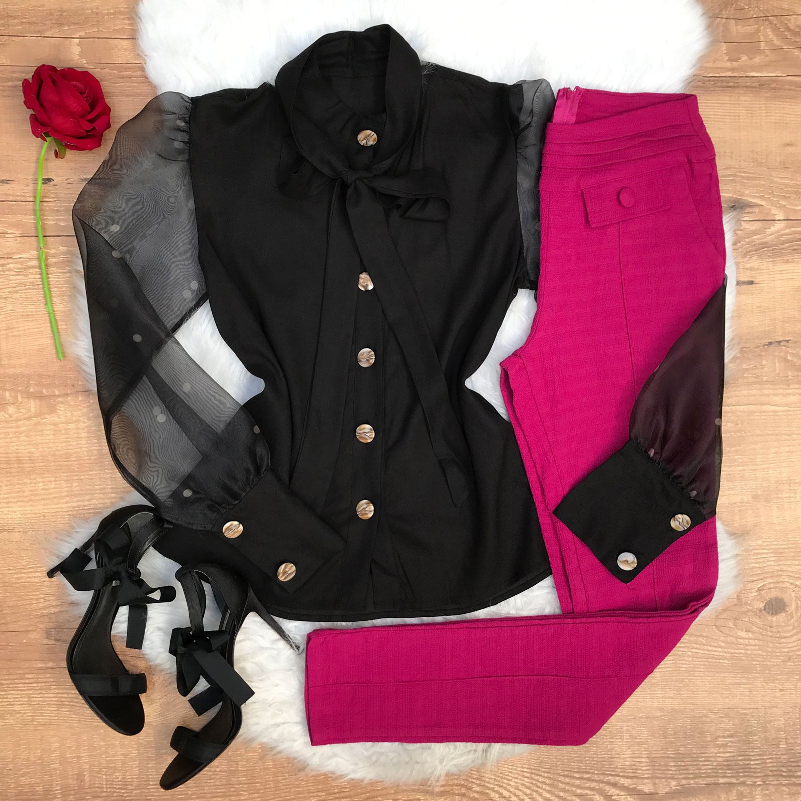 CAMISA BUFANTE MANGA EM ORGANZA PRETA