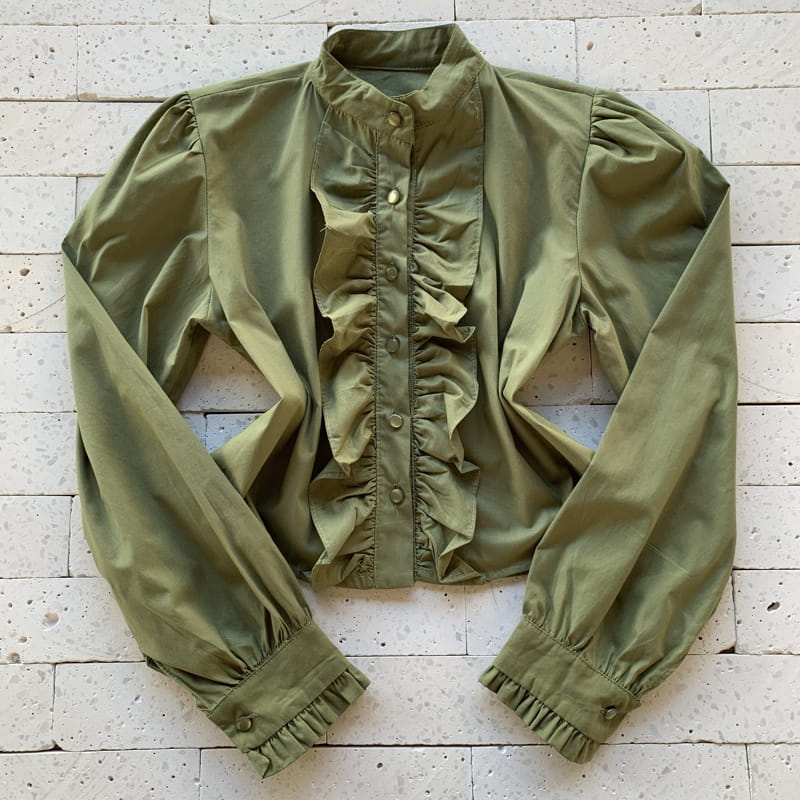 Além disso, seu comprimento cropped valoriza a silhueta feminina, destacando a cintura e deixando o look mais sensual e moderno. Contudo, a combinação do verde militar com babados cria um contraste único, garantindo que você se destaque em qualquer ambiente.