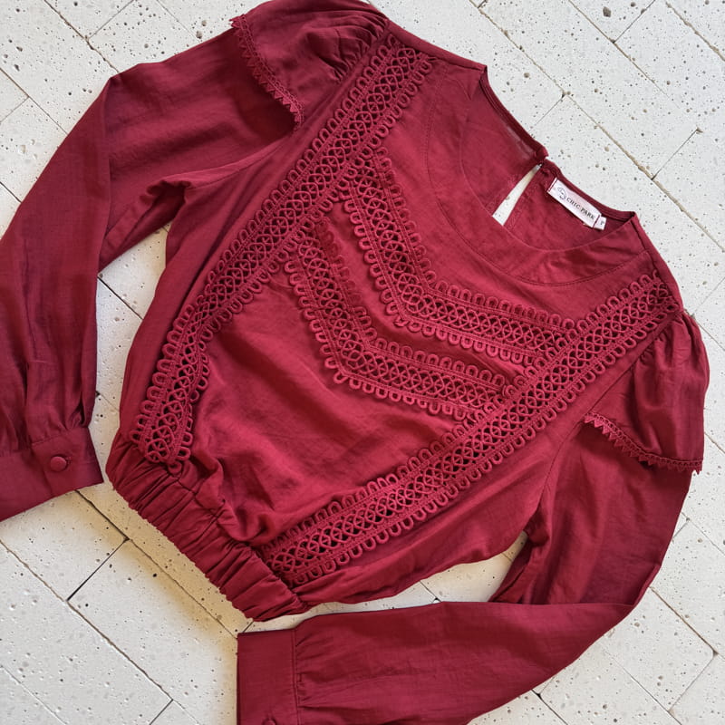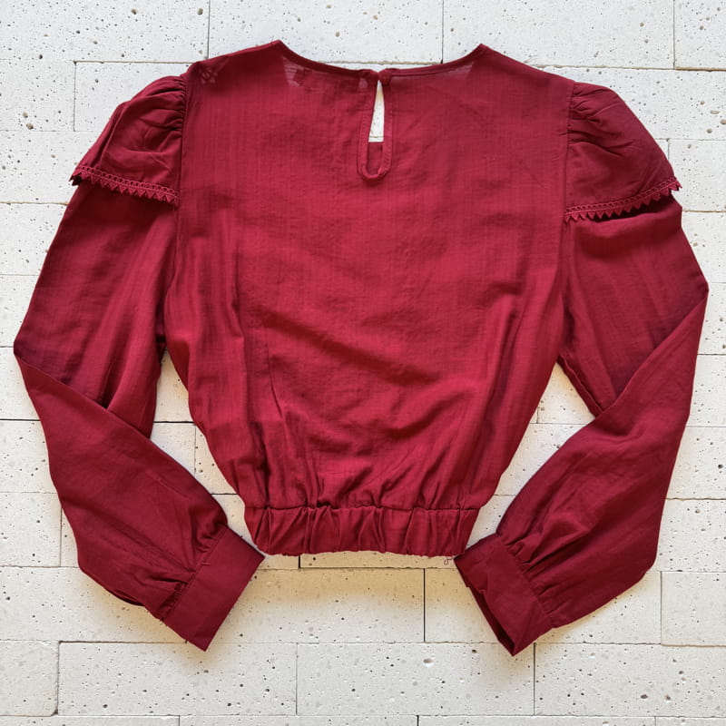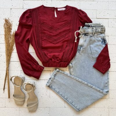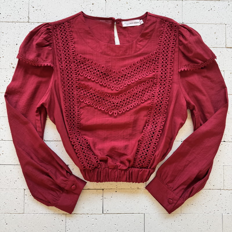 CAMISA CROPPED COM GRIPIER LUXO DETALHADA MARSALA – Elegância e sofisticação em cada detalhe