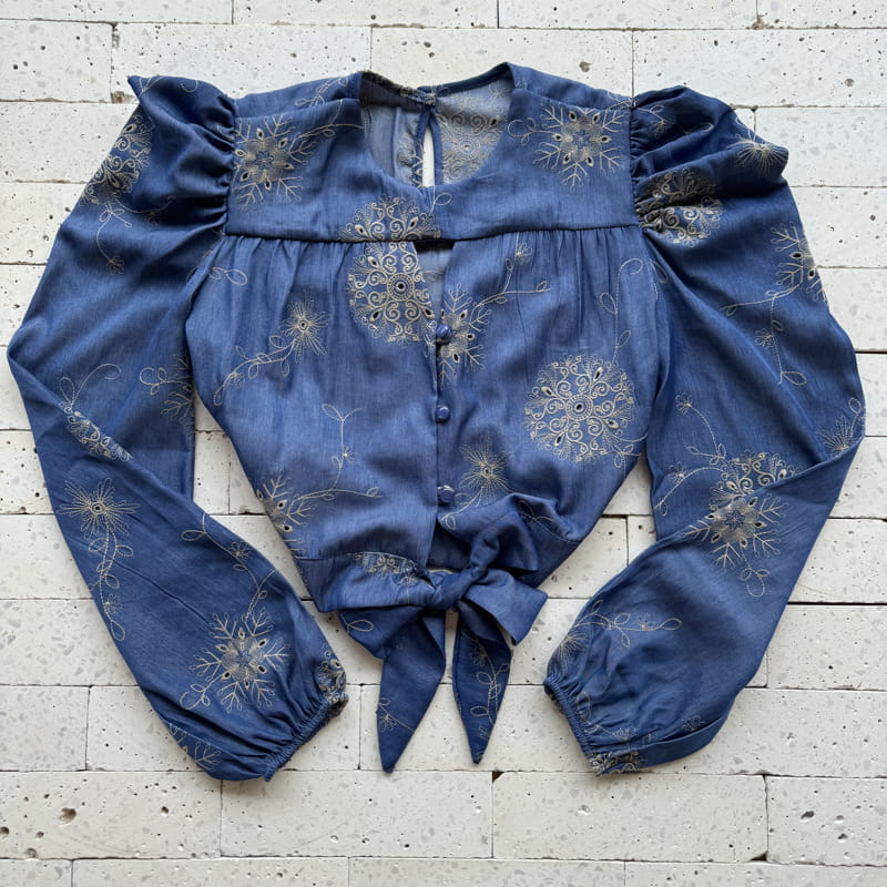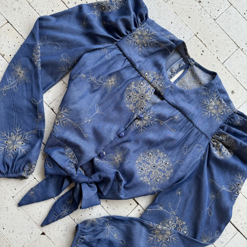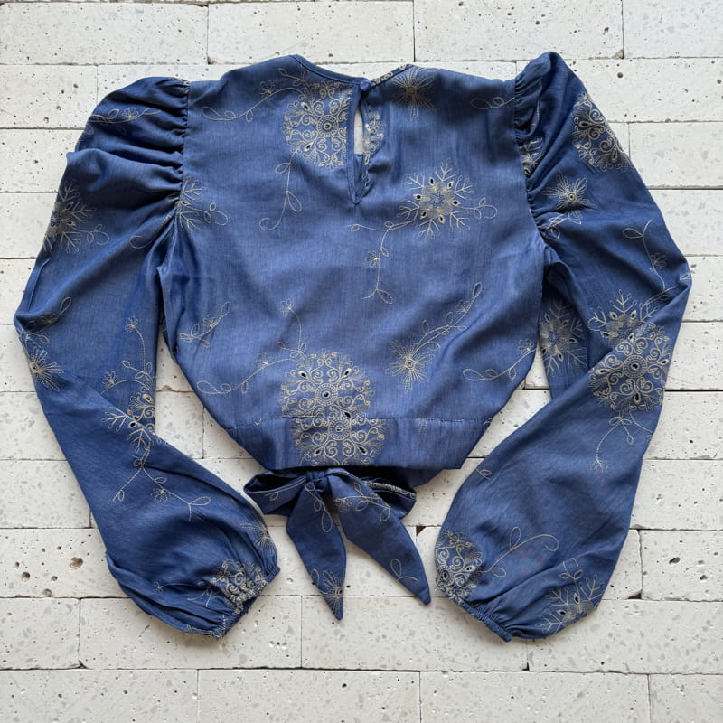 CAMISA CROPPED JEANS COM AMARRAÇÃO BORDADO PREMIUM