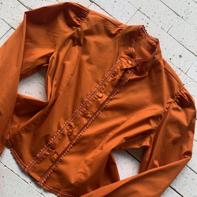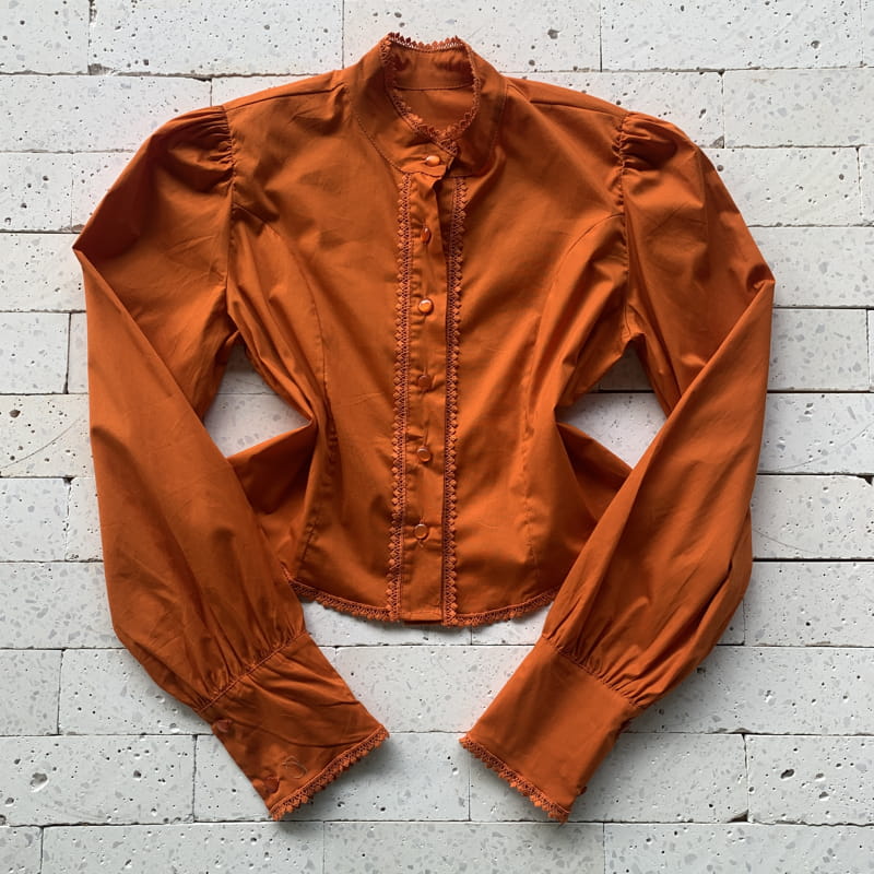 Camisa Cropped Manga Longa Tricoline Detalhe Gripier Telha