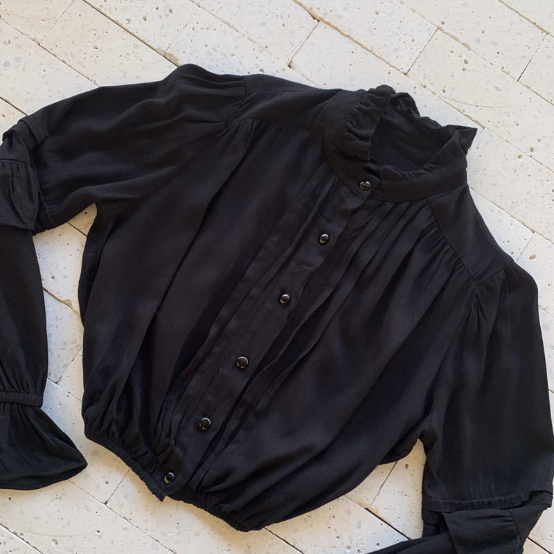 Camisa Cropped Pregas e Babados na Manga Luxo Preta – Dondoca