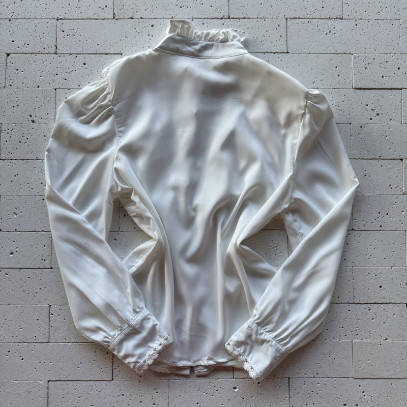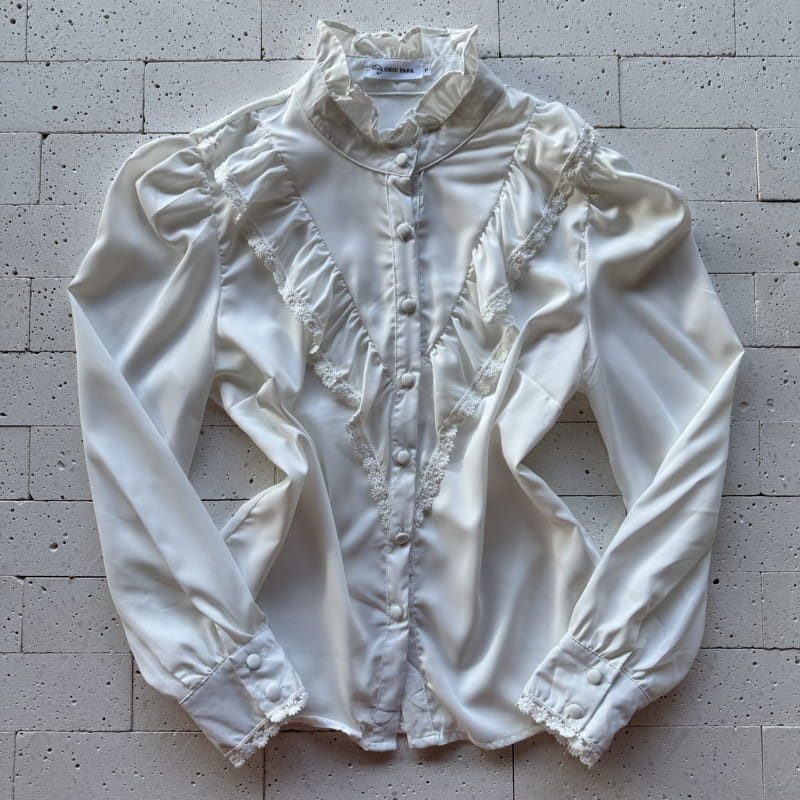 CAMISA FEMININA CREPE BABADOS COM GRIPIER LUXO OFF – Elegância Clássica em Detalhes Delicados