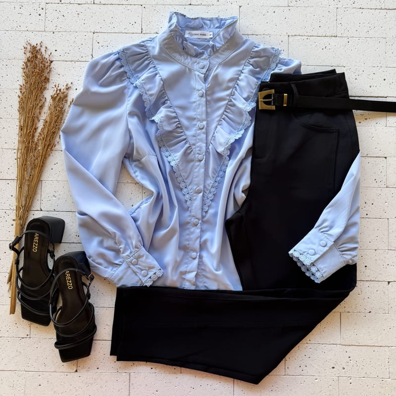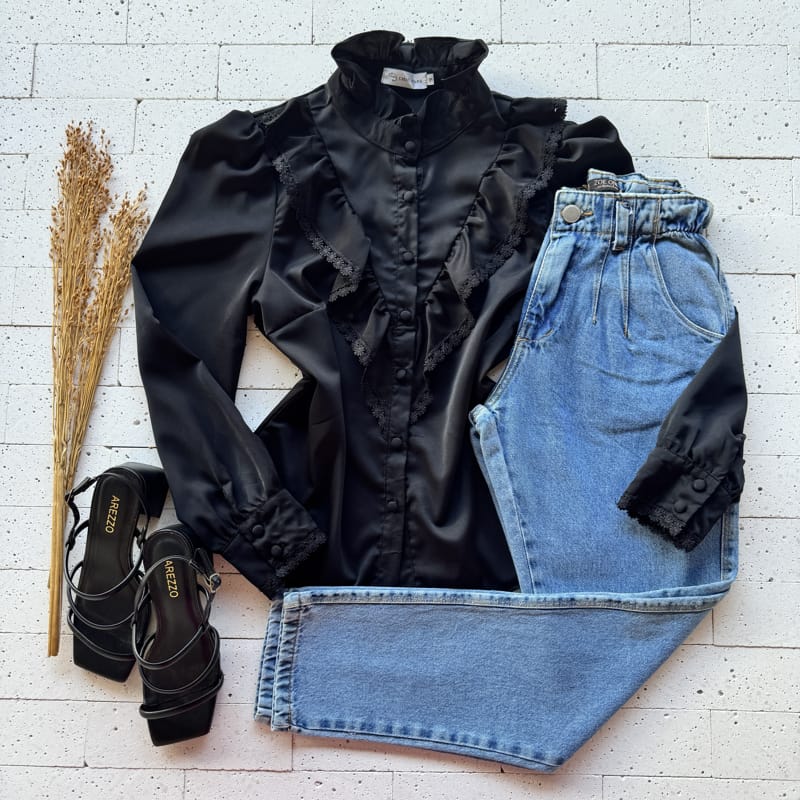 Como Usar o CAMISA FEMININA CREPE BABADOS COM GRIPIER LUXO PRETA