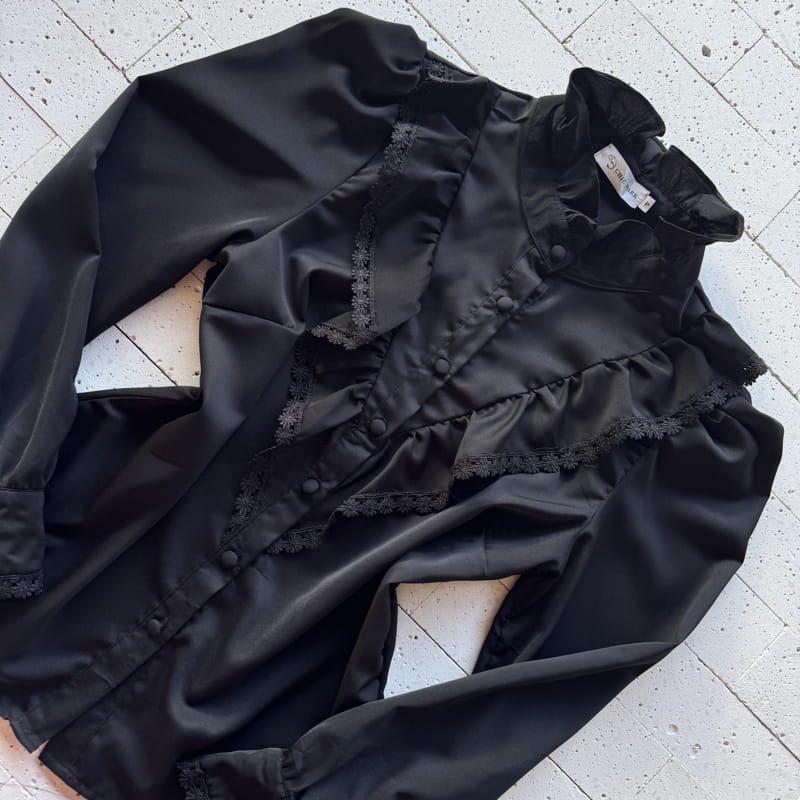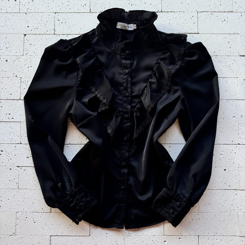 CAMISA FEMININA CREPE BABADOS COM GRIPIER LUXO PRETA