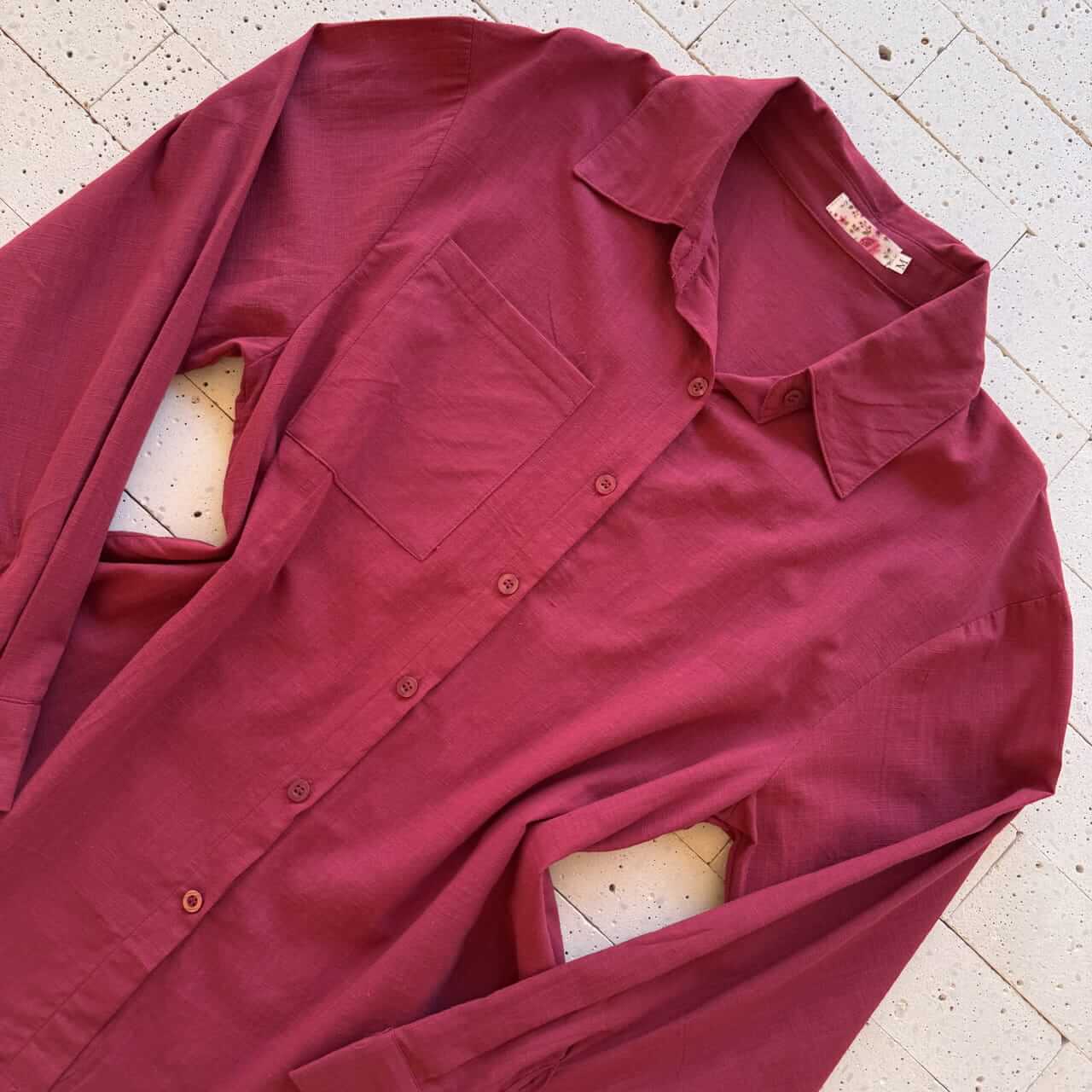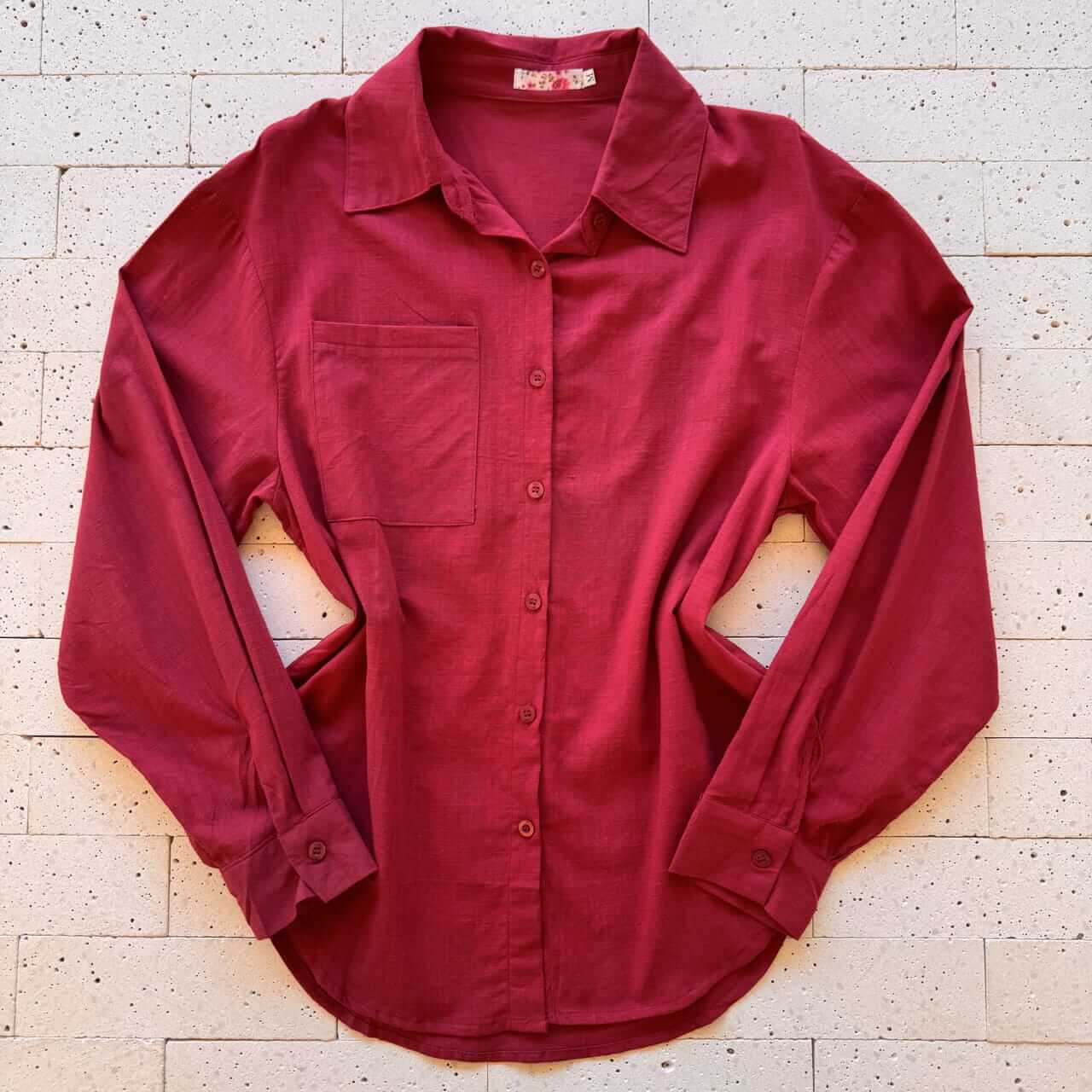 CAMISA FEMININA SOCIAL DETALHE BOLSO MARSALA