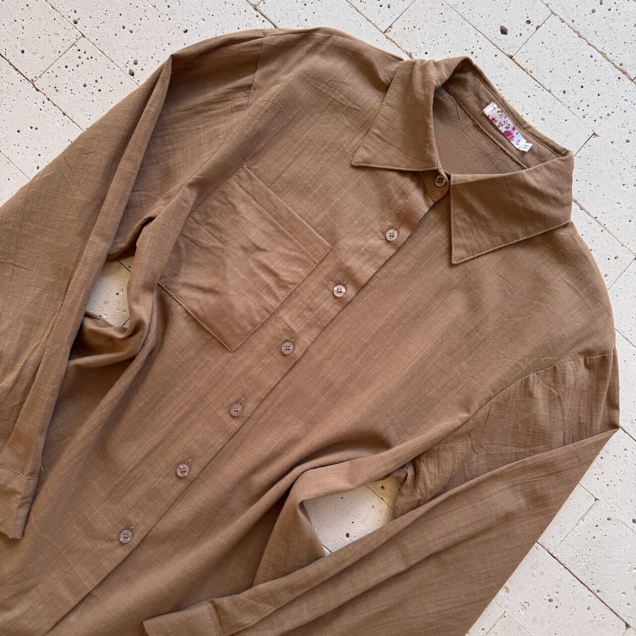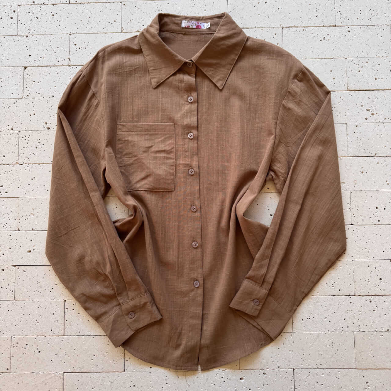CAMISA FEMININA SOCIAL DETALHE BOLSO NUDE