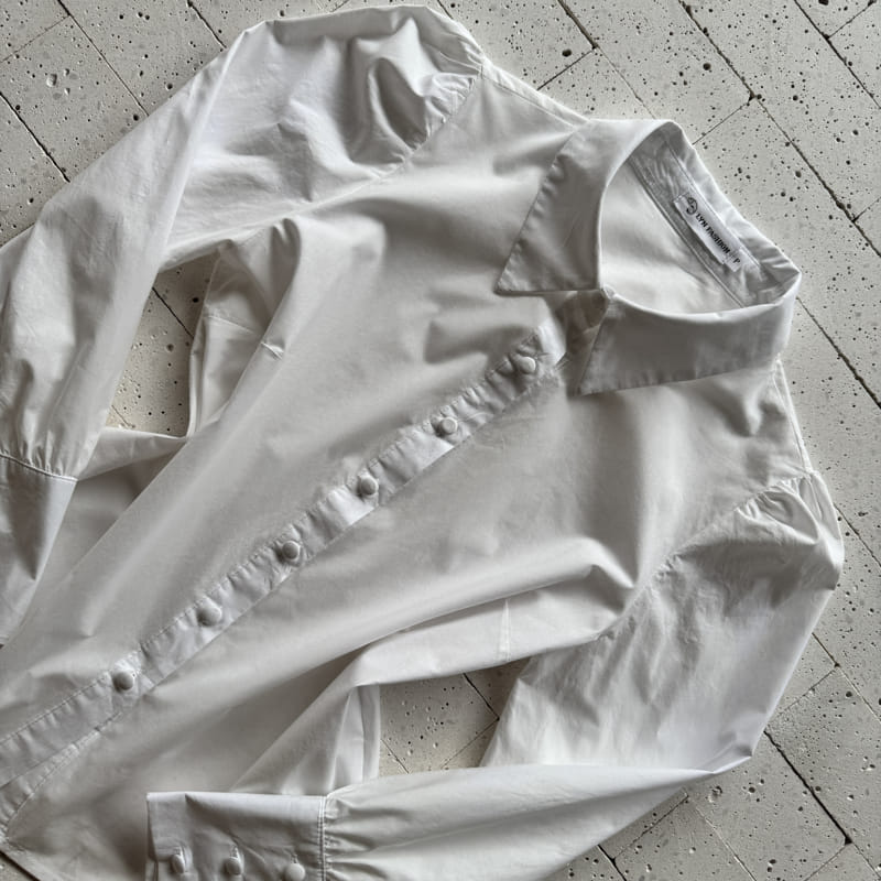 A Camisa Feminina Tricoline com Botões Encapados Luxo Off é a união perfeita entre sofisticação e atemporalidade. Confeccionada em algodão puro, essa peça traz um visual refinado com seu corte levemente acinturado, mangas com leve volume nos ombros e acabamento impecável nos punhos. Os botões encapados, tanto na parte frontal quanto nas mangas, adicionam um toque de luxo e exclusividade ao design. Ideal para compor produções mais elegantes, ela se adapta com facilidade a ambientes formais ou combinações modernas com jeans de cintura alta ou alfaiataria.