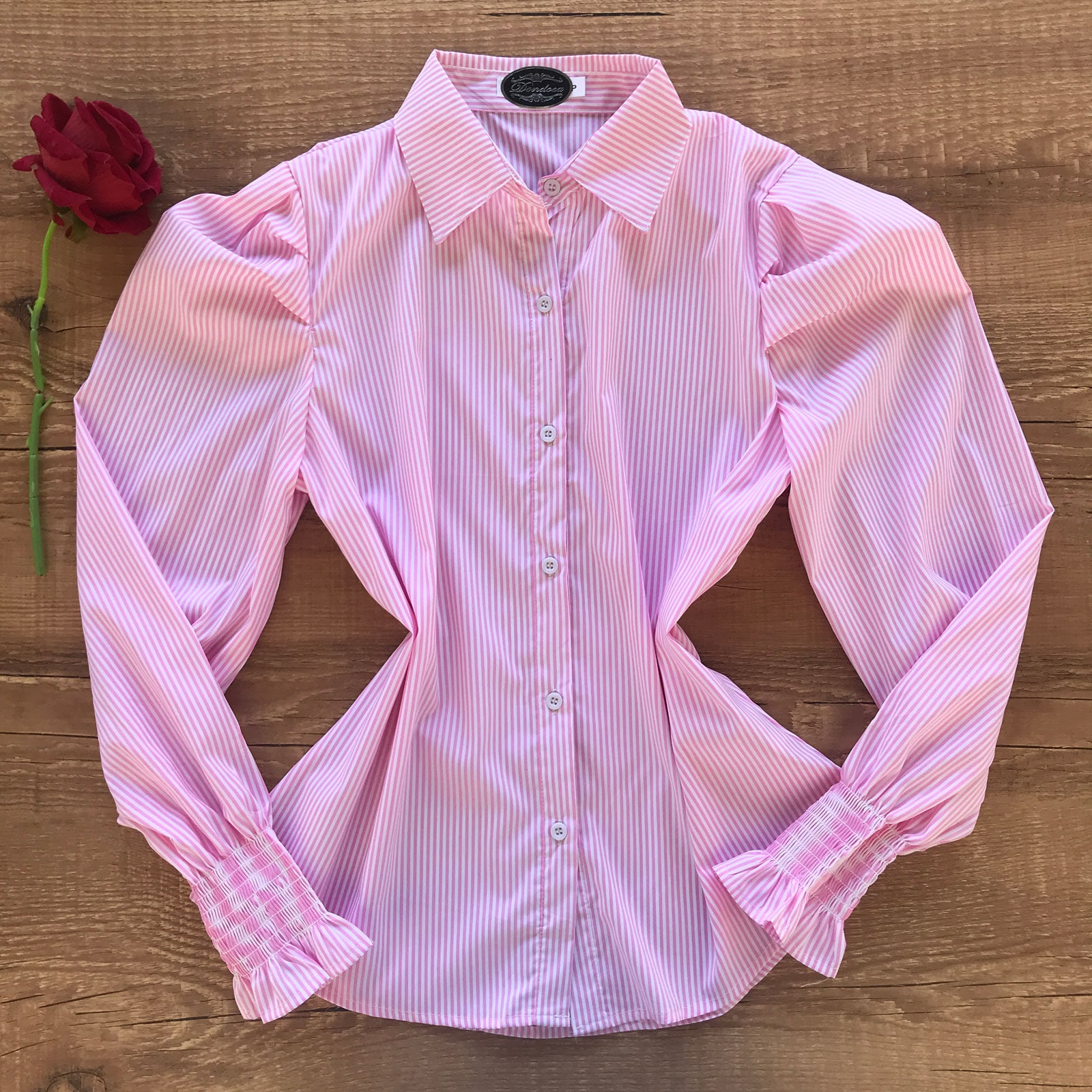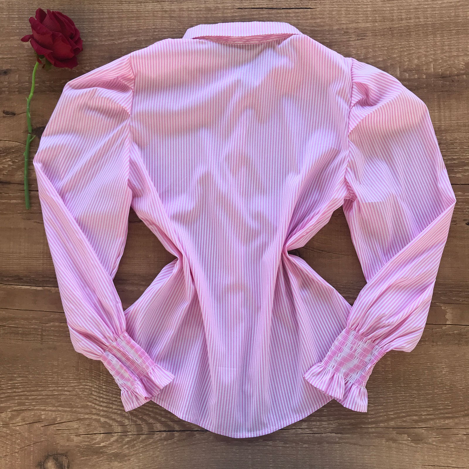 CAMISA LISTRADA MANGA BUFANTE ROSA