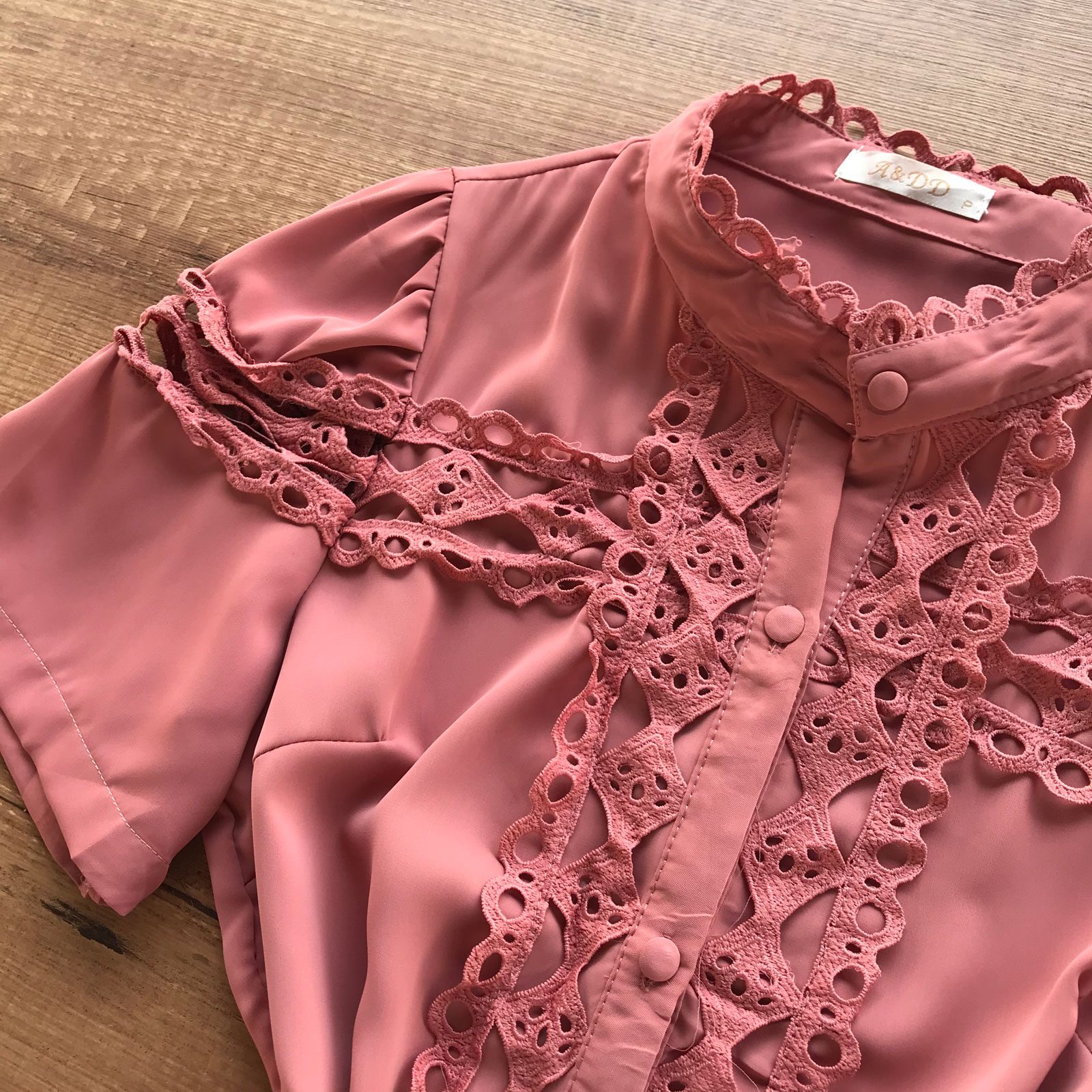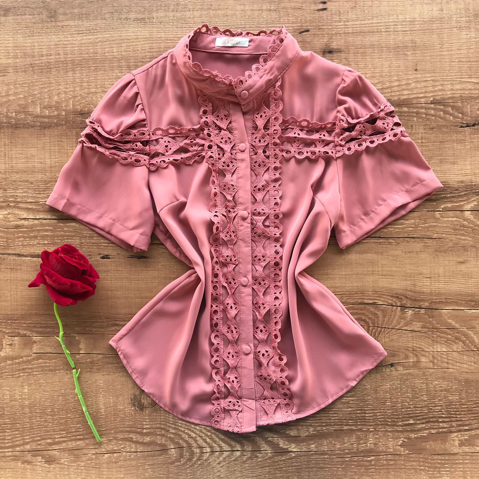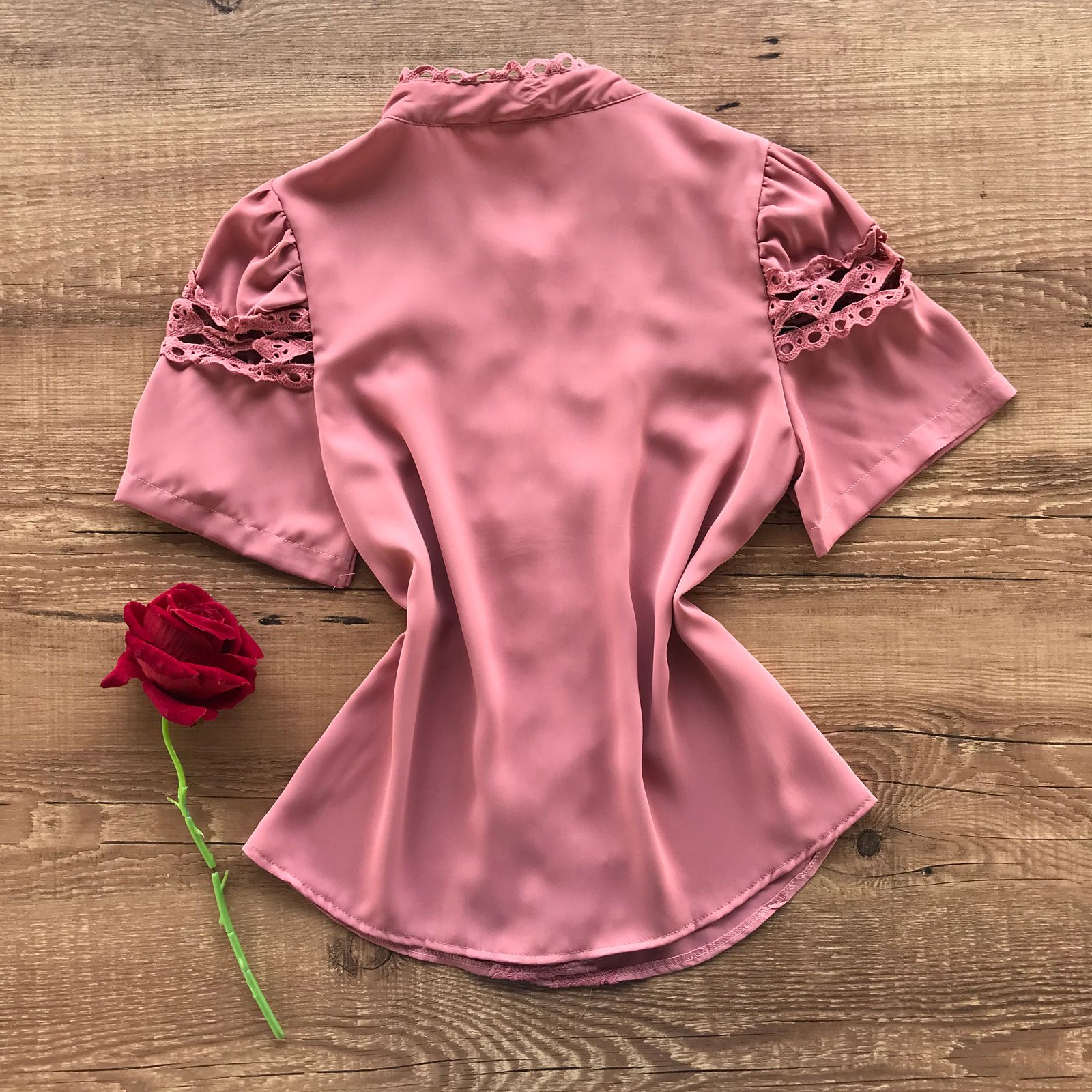 A Camisa Manga Curta Detalhe Gripier Rosa Queimado é super feminina e delicada. Fabricada em crepe de alta qualidade, a peça apresenta um caimento perfeito! Conta com botões encapados funcionais por toda sua extensão, acompanhados de lindos detalhes em gripier. As mangas curtas possuem detalhes drapeados, e mais uma vez o gripier aparece. A gola é alta e também detalhada em gripier.