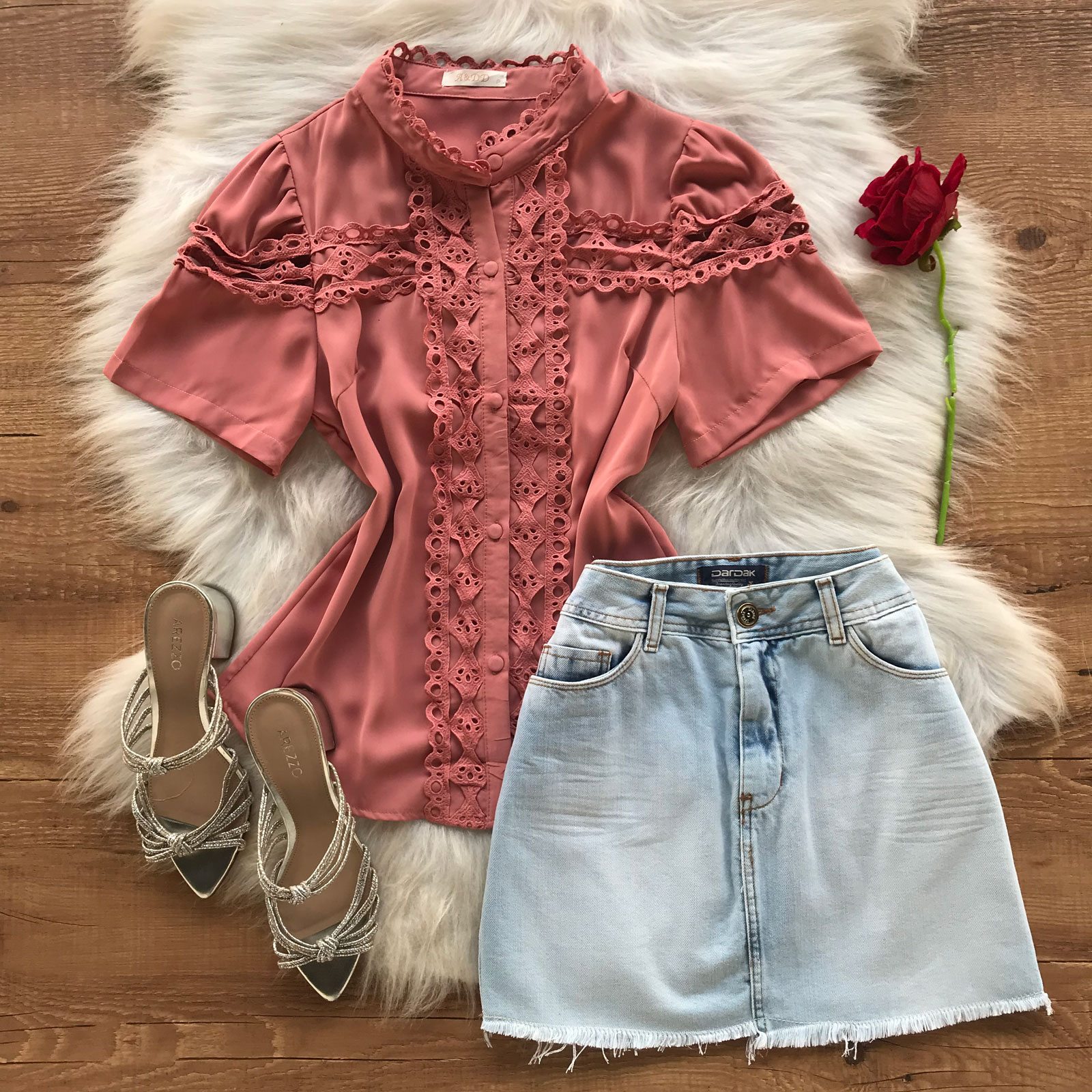 Como usar sua Camisa Manga Curta Detalhe Gripier Rosa Queimado