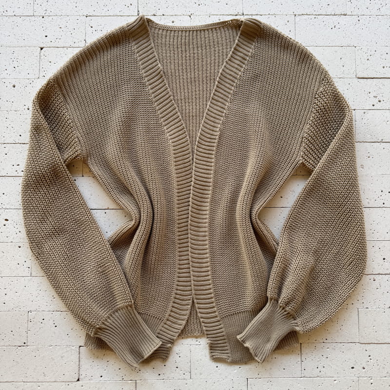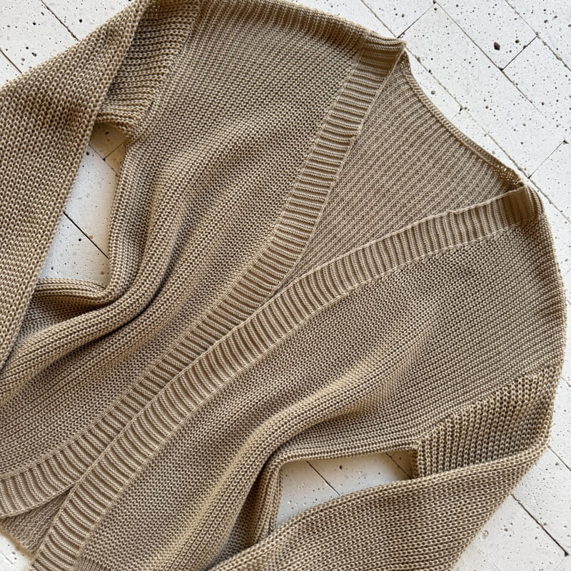 Cardigan Tricô Alongado Bege – Textura Premium e Caimento Confortável