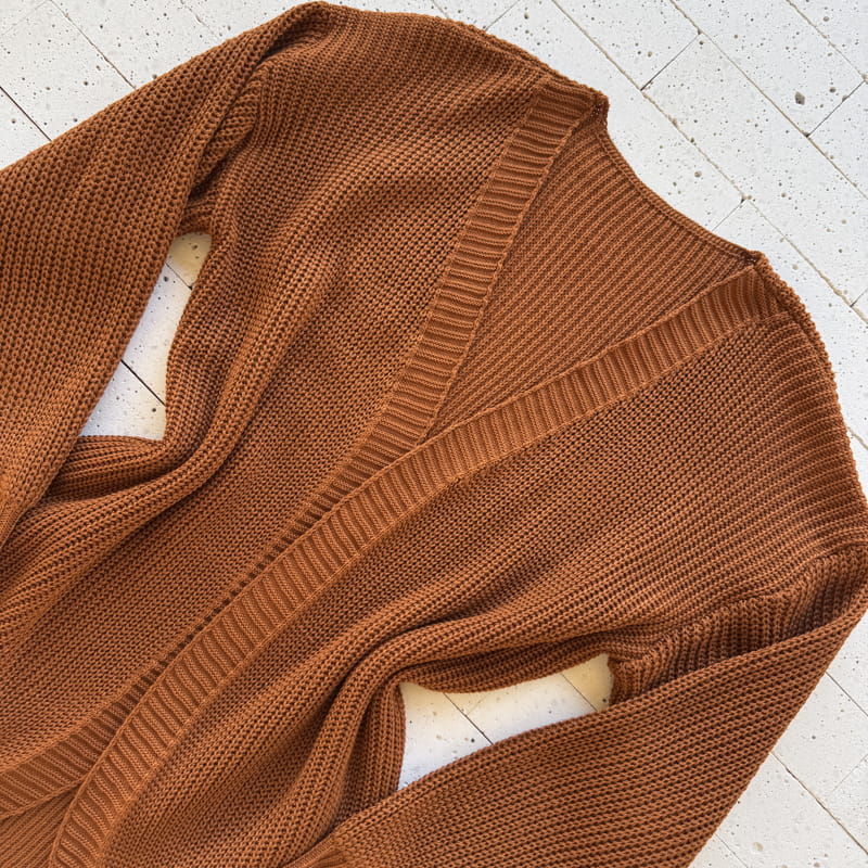 CARDIGAN TRICO ALONGADO TELHA – Elegância e Conforto com Caimento Sofisticado