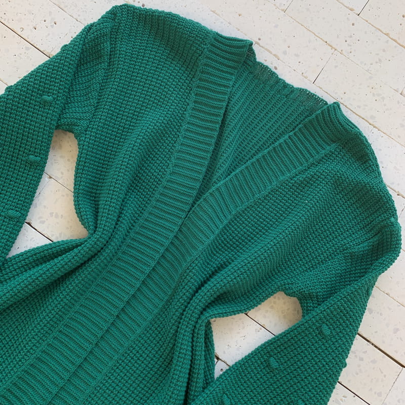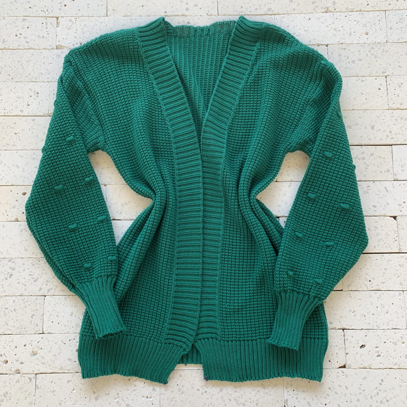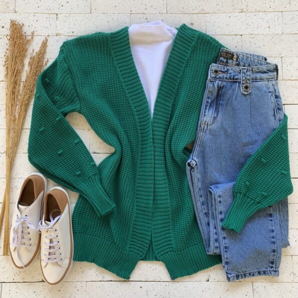 CARDIGAN TRICO MANGA BOLHAS VERDE