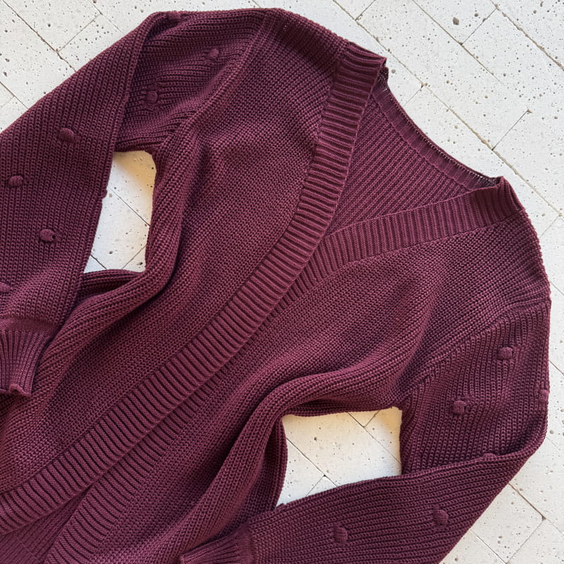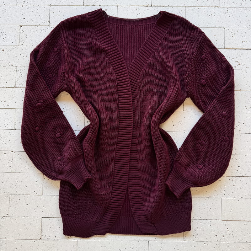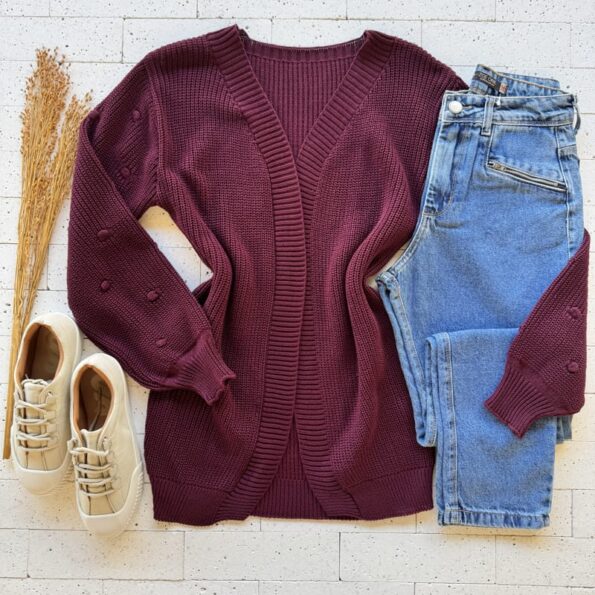 CARDIGAN TRICO MANGA BOLHAS VINHO – Estilo e Charme em Cada Trama