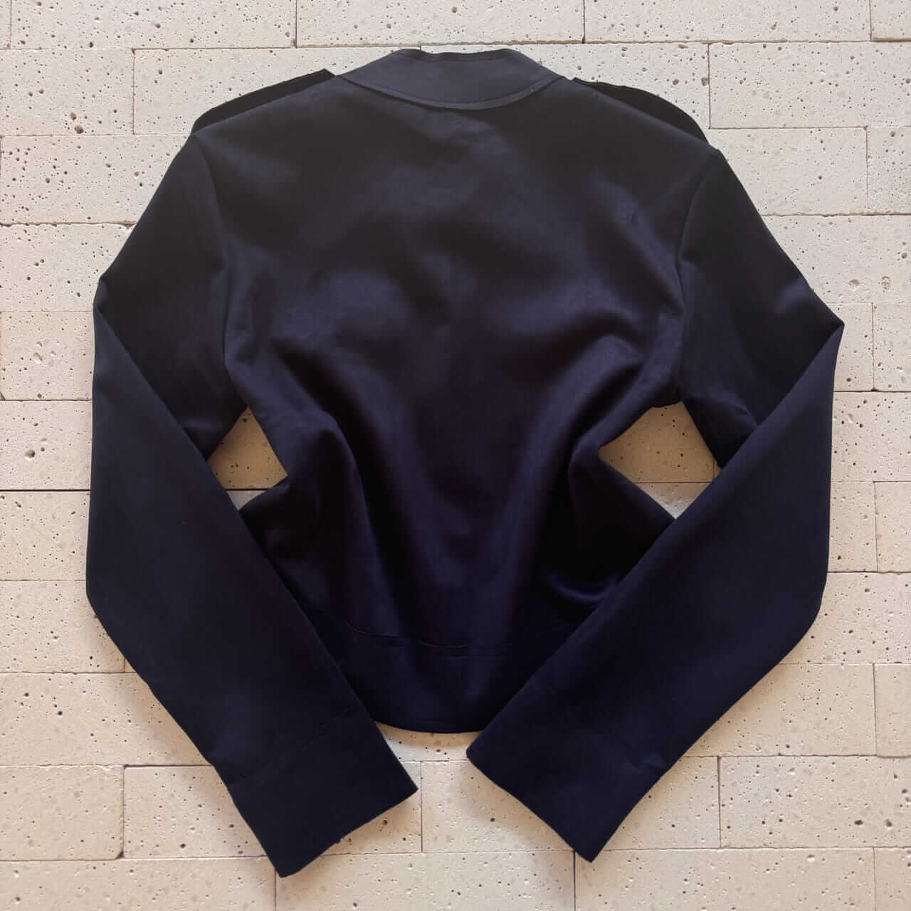 O tom marinho é ideal para composições elegantes e fáceis de combinar. Use com jeans de cintura alta para um look casual chic ou combine com peças de alfaiataria para uma produção mais sofisticada. Os botões dourados deixam o visual ainda mais refinado e valorizam acessórios em tons metálicos ou neutros.