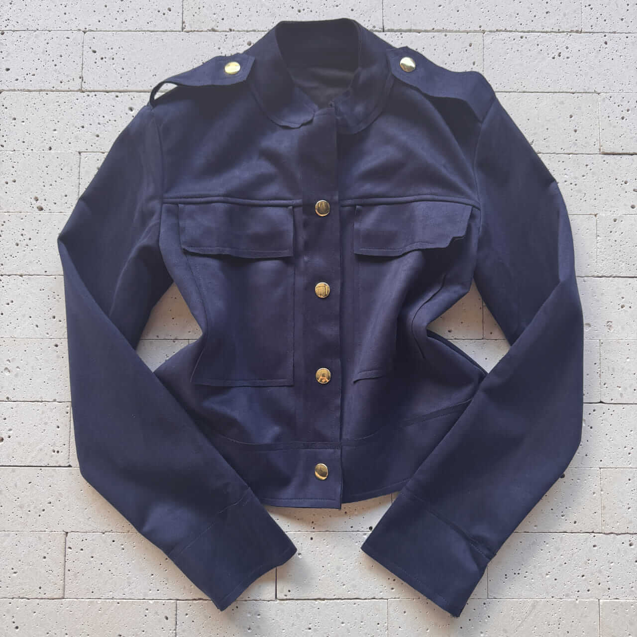 CASACO SUEDE DETALHE BOLSOS E BOTÕES MARINHO