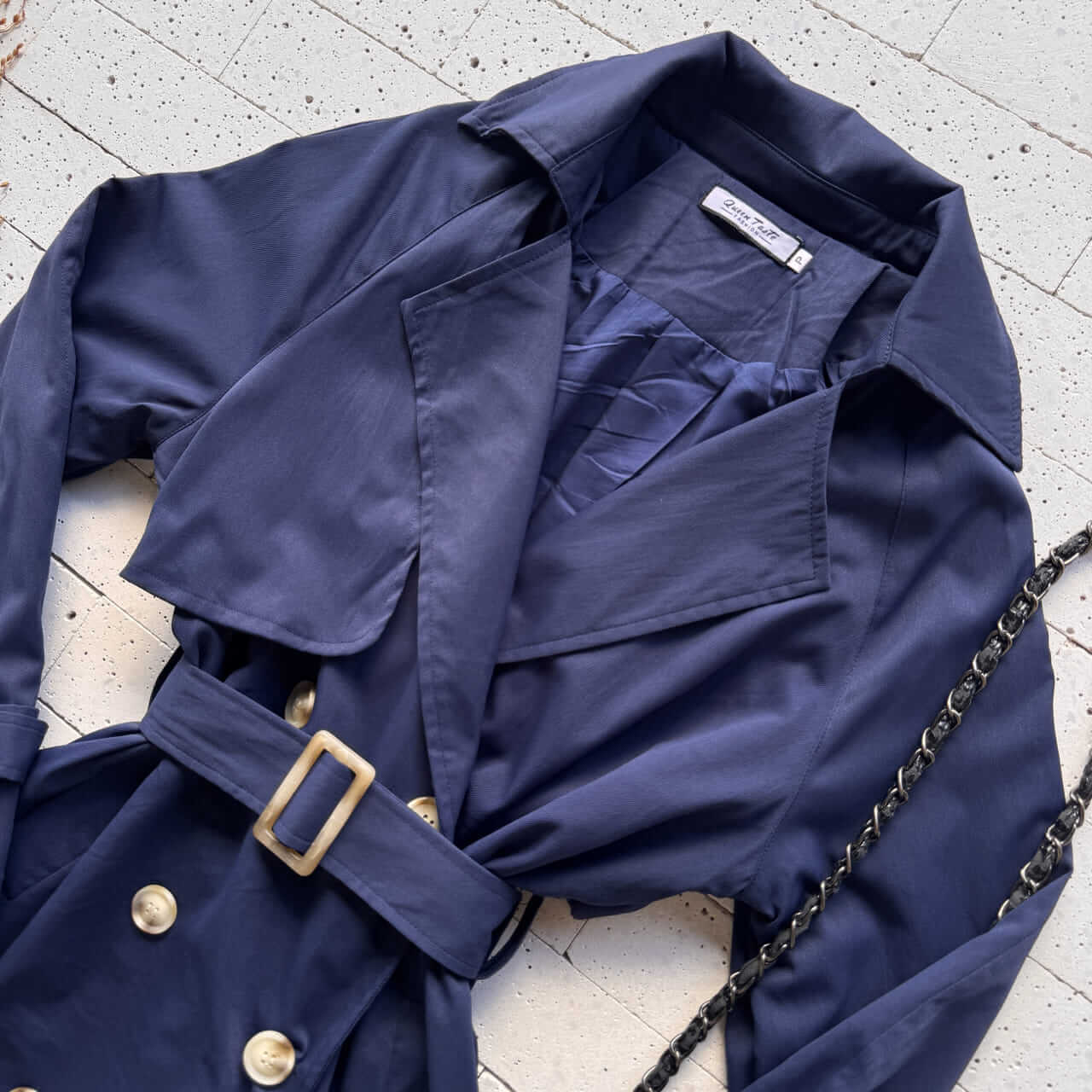 CASACO TRENCH COAT ALONGADO MARINHO