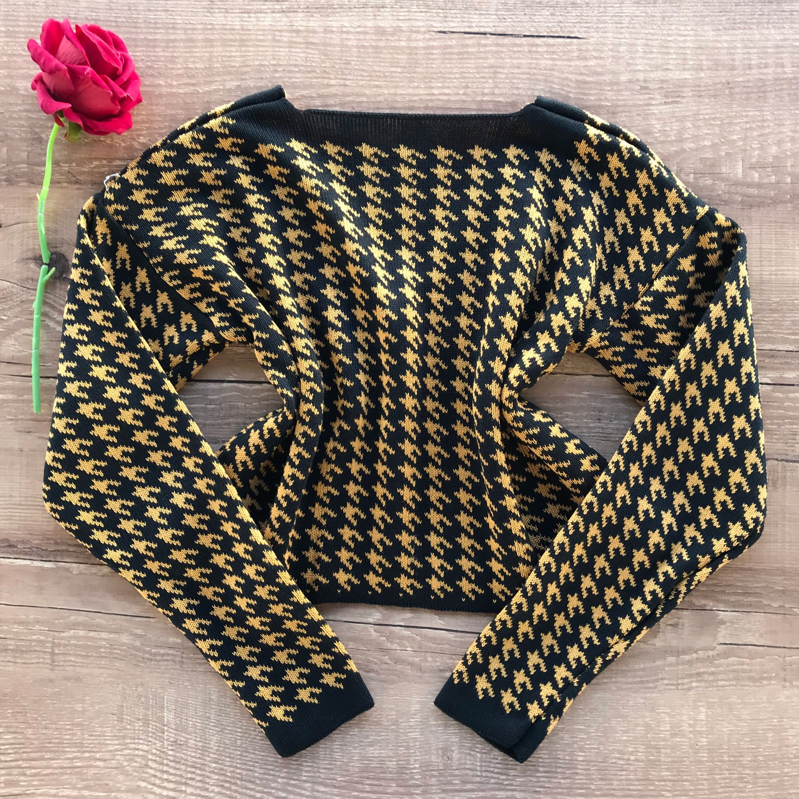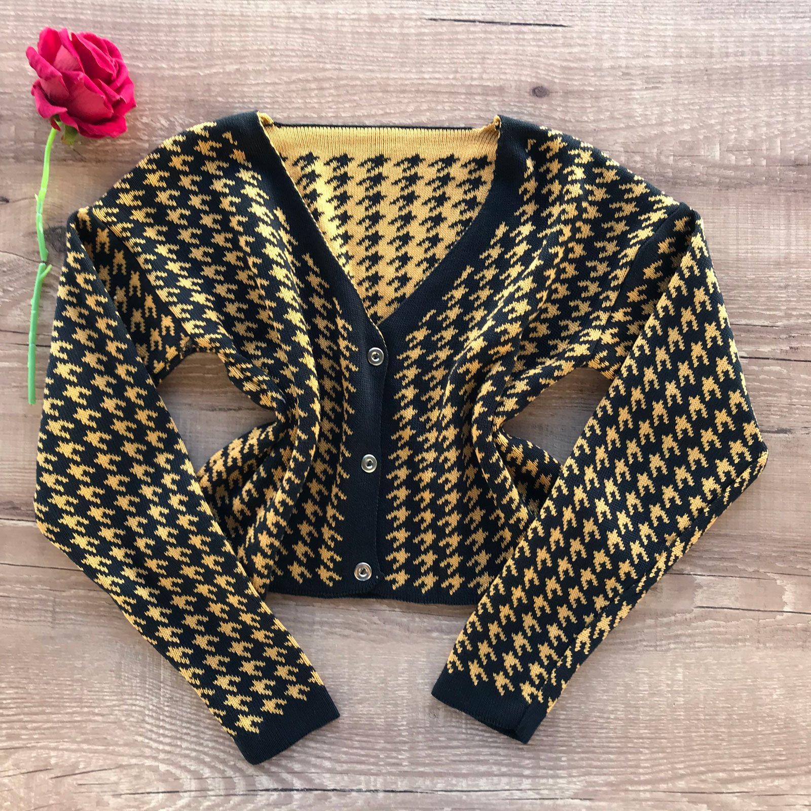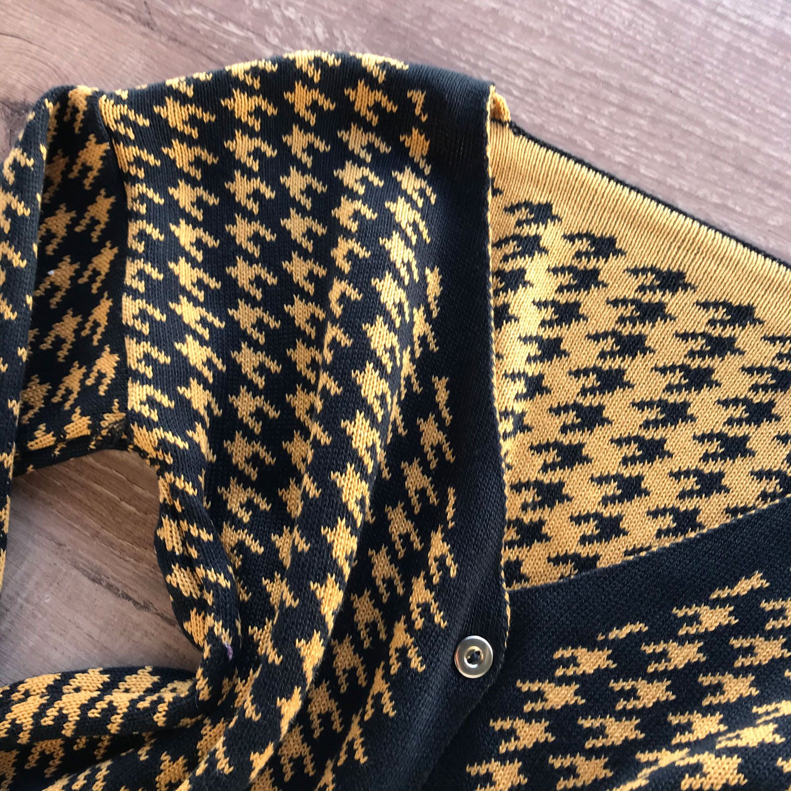 Como usar seu Casaquinho Trico Xadrez Pied de Poule Preto e Mostarda