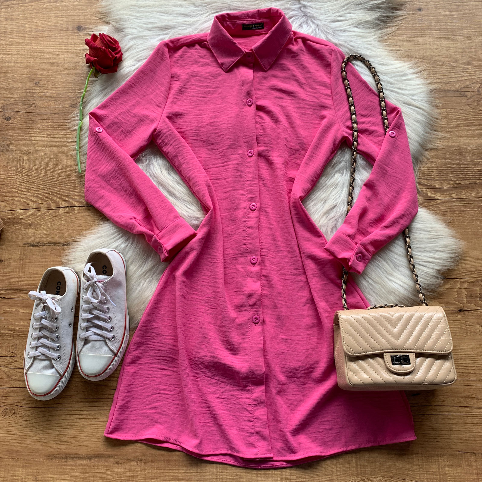 O vestido chemise tecido é uma peça elegante e versátil que tornou-se tendência para as estações, se tornando forte escolha do momento! Quando usados criando sobreposições, com coletes de diferentes composições, blazers, ou até mesmo croppeds de alça. Como peças únicas, as chemises também destacam e transitam bem em muitos estilos. A peça pode ser usada com meias calças nos dias mais frios, por carregar um aspecto atemporal. Nos pés, varie o calçado de acordo com a ocasião. Para realçar a autenticidade e originalidade deixando o visual com a cara da estação, os coturnos ou tênis serão boas apostas. Inclua acessórios e arrase!