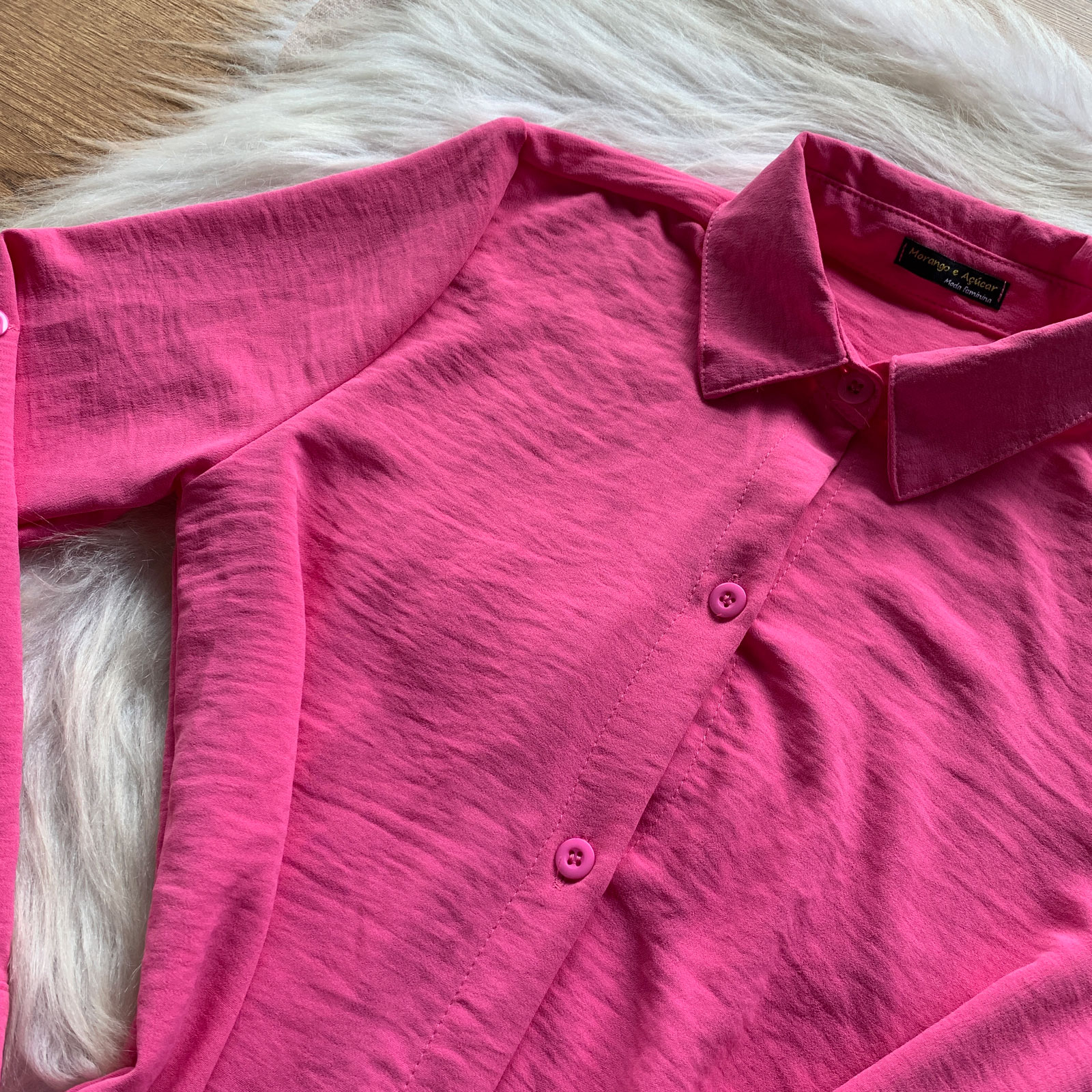 O Chemise Tecido Air Flow Pink é definitivamente o novo básico fashion da vez. Ideal para a nova temporada e perfeito para você! A peça é confeccionada com acabamento air Flow, sendo este um tecido que oferece toque macio, conforto, leveza e uma medida de transparência por sua gramatura baixa. Possui fechamento em botões resinados funcionais que facilitam o vestir. Apresenta gola dobrável com acabamento em botão funcional que evidencia um acabamento social, junto das mangas longas que também criam barreira em dias frios. Contém acabamento no punho e carcela alta com botão.