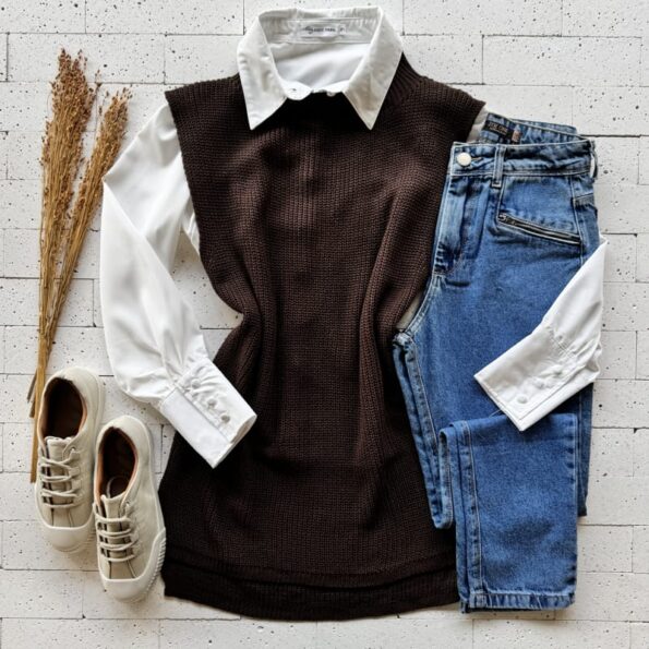 COLETE TRICÔ ALONGADO BÁSIC CAFÉ – Elegância Casual em Cada Detalhe