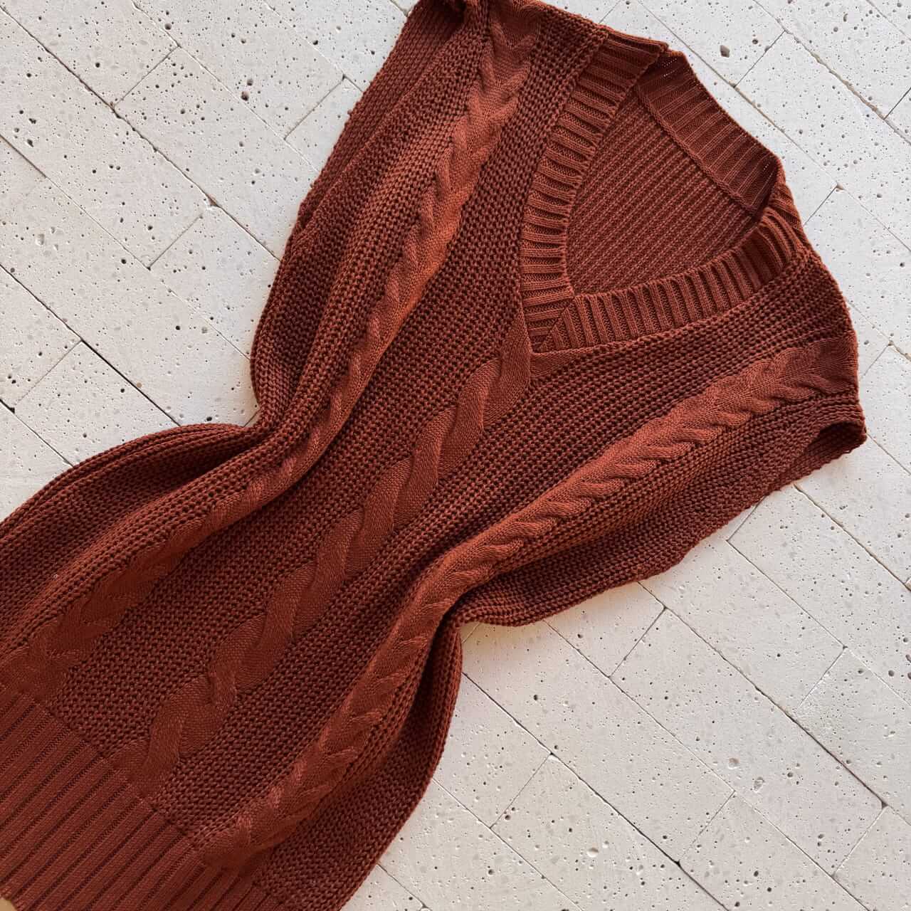 COLETE TRICO ALONGADO DETALHE TRAMA CARMIM