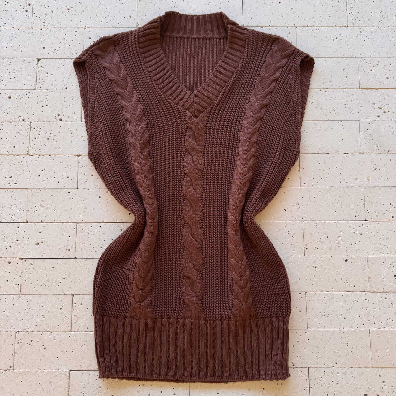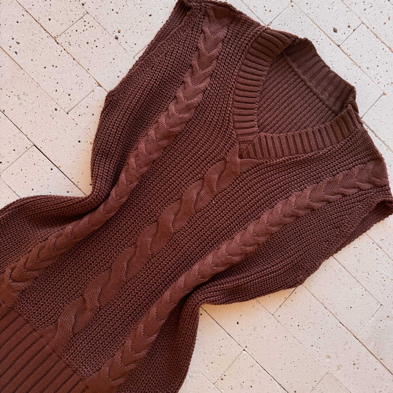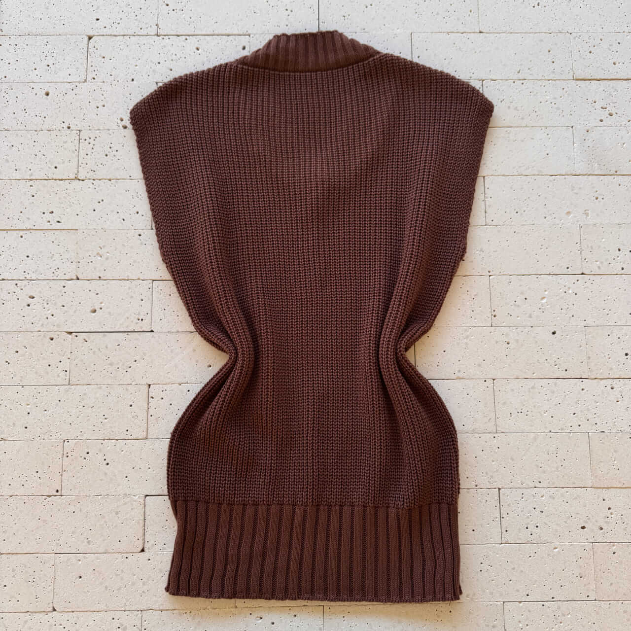 COLETE TRICO ALONGADO DETALHE TRAMA MARROM