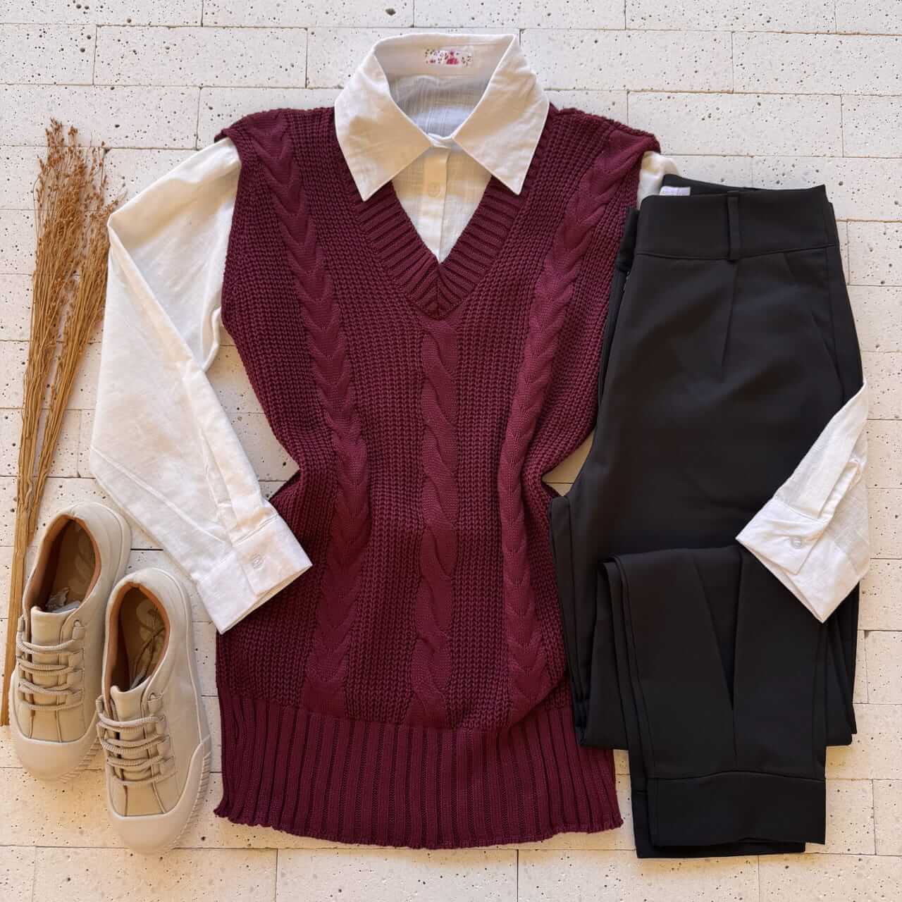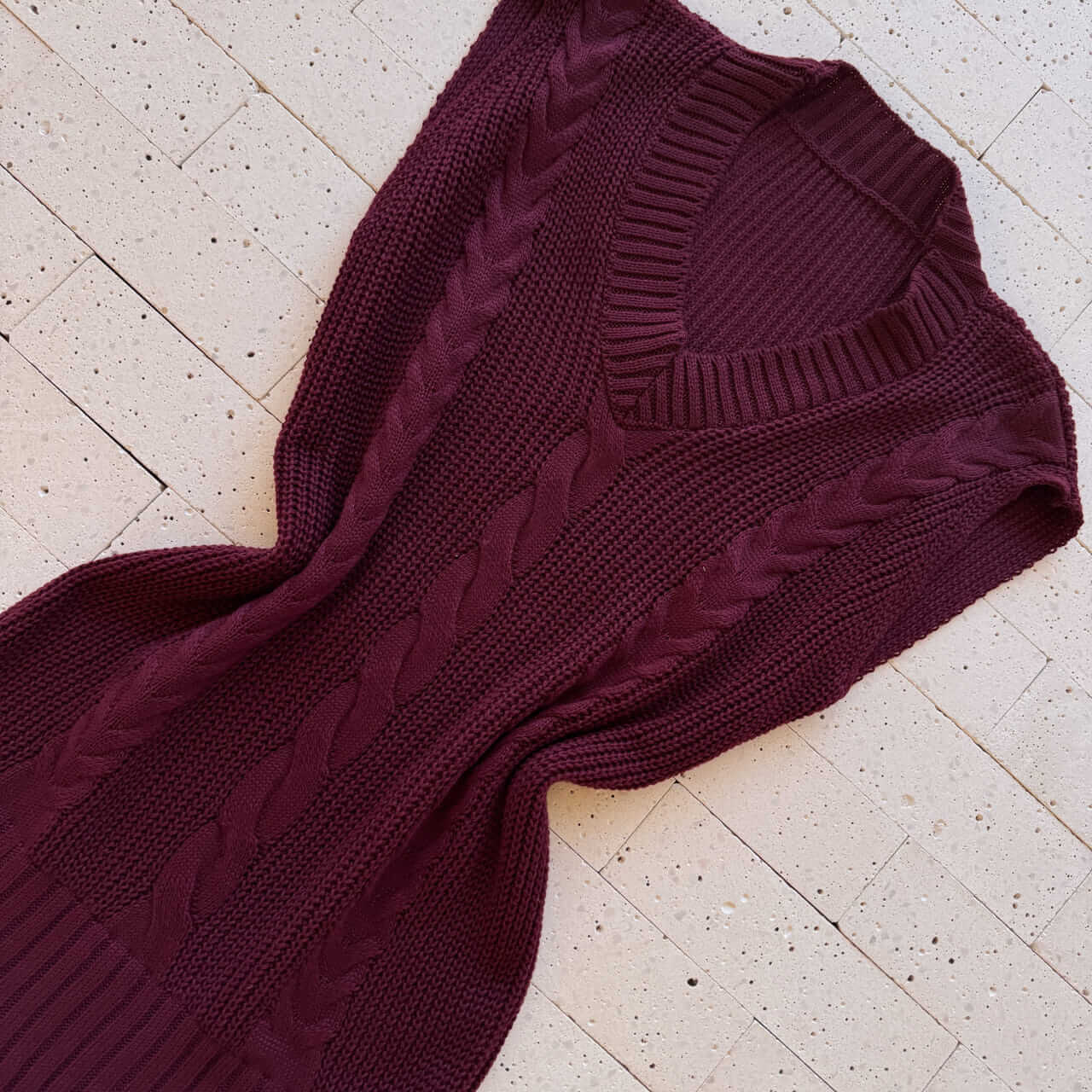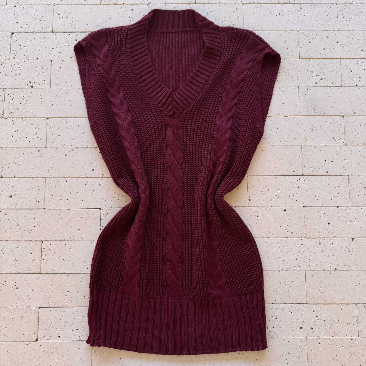 COLETE TRICO ALONGADO DETALHE TRAMA VINHO