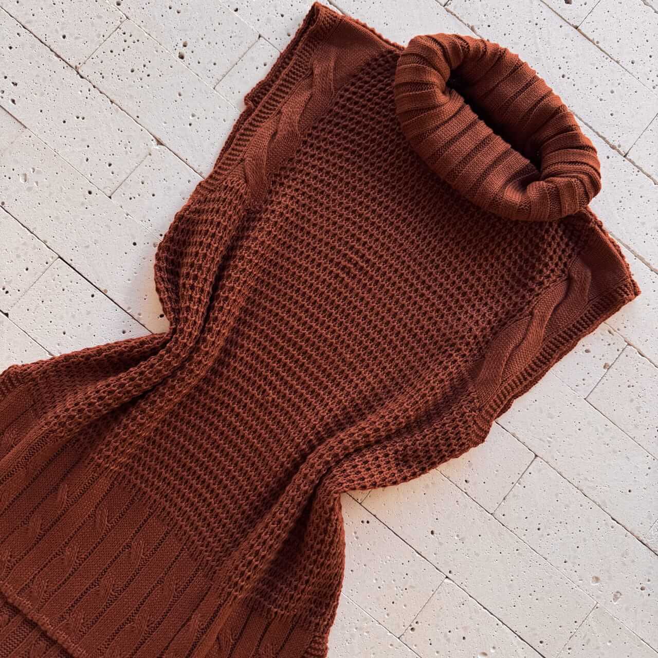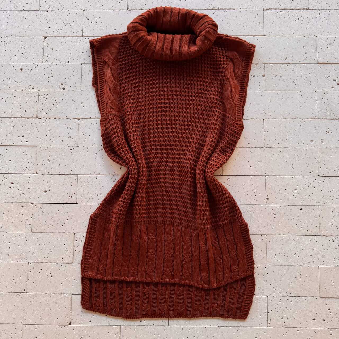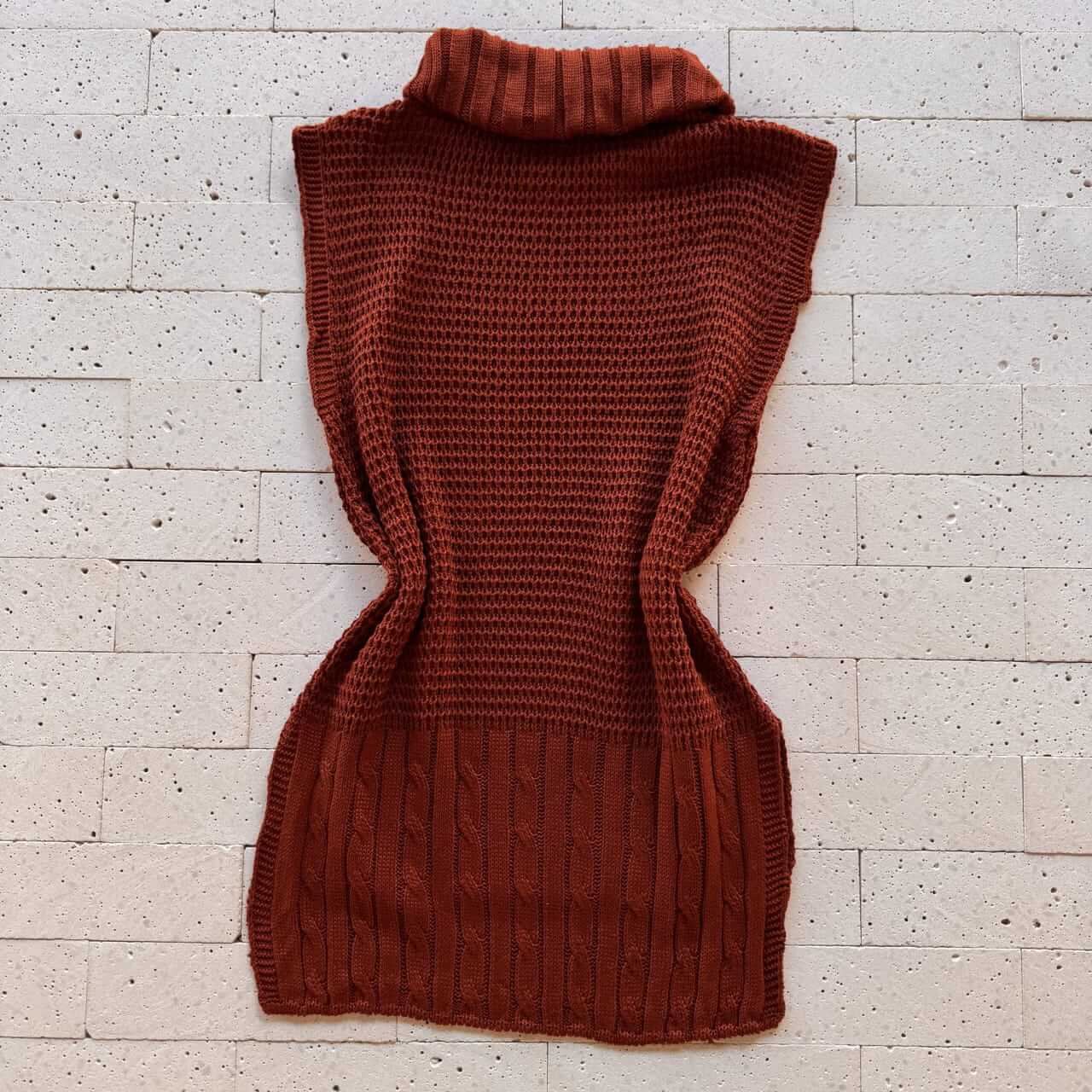COLETE TRICO ALONGADO GOLA BOBA DETALHE TRAMA CARMIM