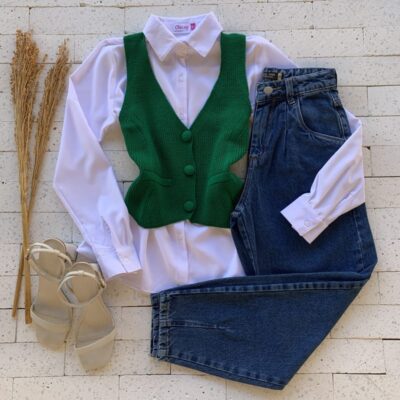 Colete Trico Curto Luxo Verde: Elegância e Sofisticação em uma Peça