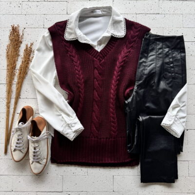 COLETE TRICÔ DETALHE TRAMA E ABERTURA LATERAL VINHO – Toque de Cor com Sofisticação Atemporal