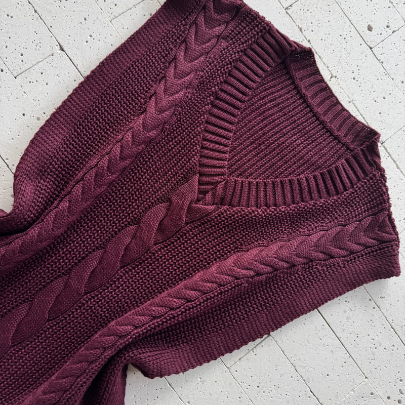 O Colete Tricô Vinho é a escolha ideal para quem busca uma peça charmosa, com personalidade e perfeita para sobreposições elegantes. Com tramas em relevo no centro e laterais, ele valoriza o visual com textura e profundidade, enquanto o decote em V e as cavas amplas proporcionam conforto e estilo. As aberturas nas laterais garantem um caimento leve e fluído, tornando-o versátil para looks casuais ou mais arrumados. O tom vinho intenso adiciona um toque de sofisticação aos dias frios, combinando com tons neutros, terrosos ou até estampas.