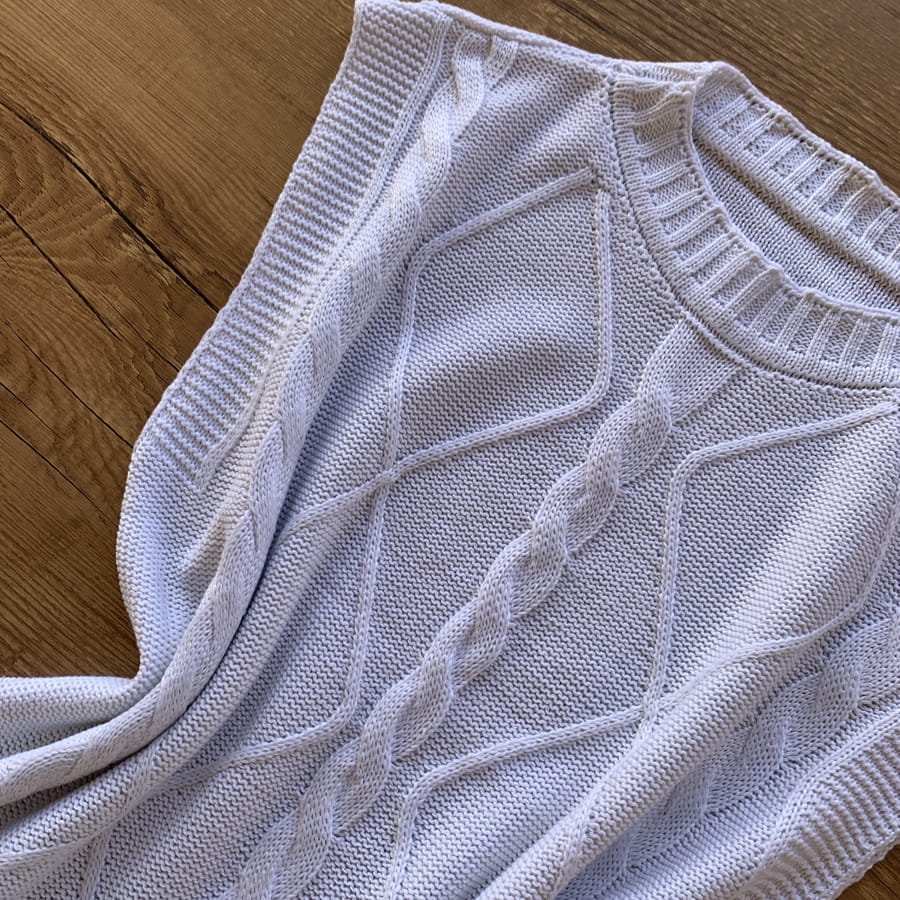 - Bordas em tricô canelado;