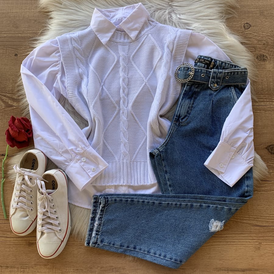 O Colete tricot feminino é a peça que você precisa ter em seu guarda-roupas já que combina o clássico ao criativo! Experimente como terceira peça e combine com camisas de manga longa, camisetas básicas ou mesmo a peça sem que necessário uso de sobreposições por exemplo para dar um aspecto estiloso e jovial às composições minimalistas. Para as amantes de um visual mais profissional e sofisticado para o ambiente de trabalho, a ideia é usar com calças de modelagem mais ajustada como as slim de alfaiataria combinadas às camisas femininas social, saltos e bolsas. Se a proposta for voltada a um esportivo moderno, o colete tricot pode ser usado com camisetas, saias ou short-saias e ainda tênis tratorados. Você vai amar a versatilidade desta opção!
