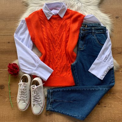 Colete Trico Trabalhado Laranja