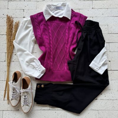COLETE TRICO TRAMA TRABALHADA MAGENTA
