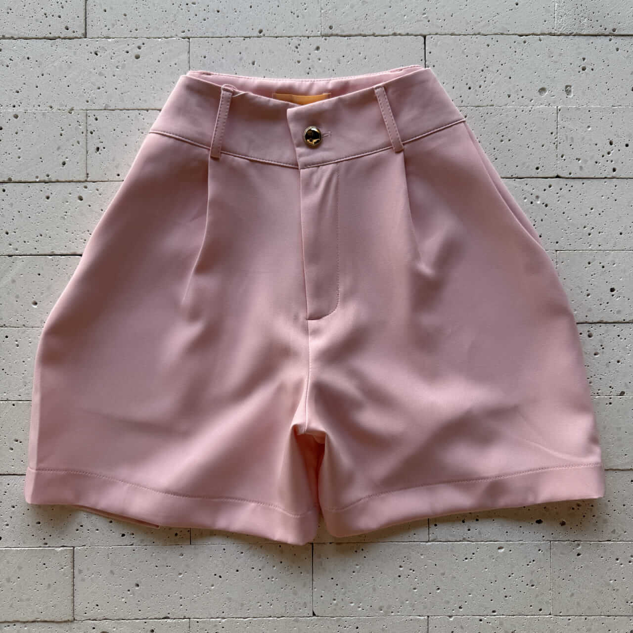 CONJUNTO ALFAIATARIA BLUSA GOLINHA E BOTÕES E SHORT ROSA