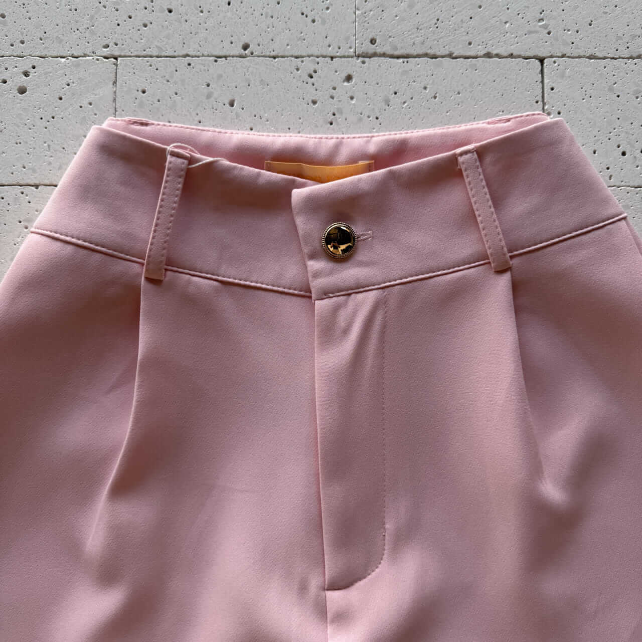 CONJUNTO ALFAIATARIA BLUSA GOLINHA E BOTÕES E SHORT ROSA – Elegância com Toque Moderno