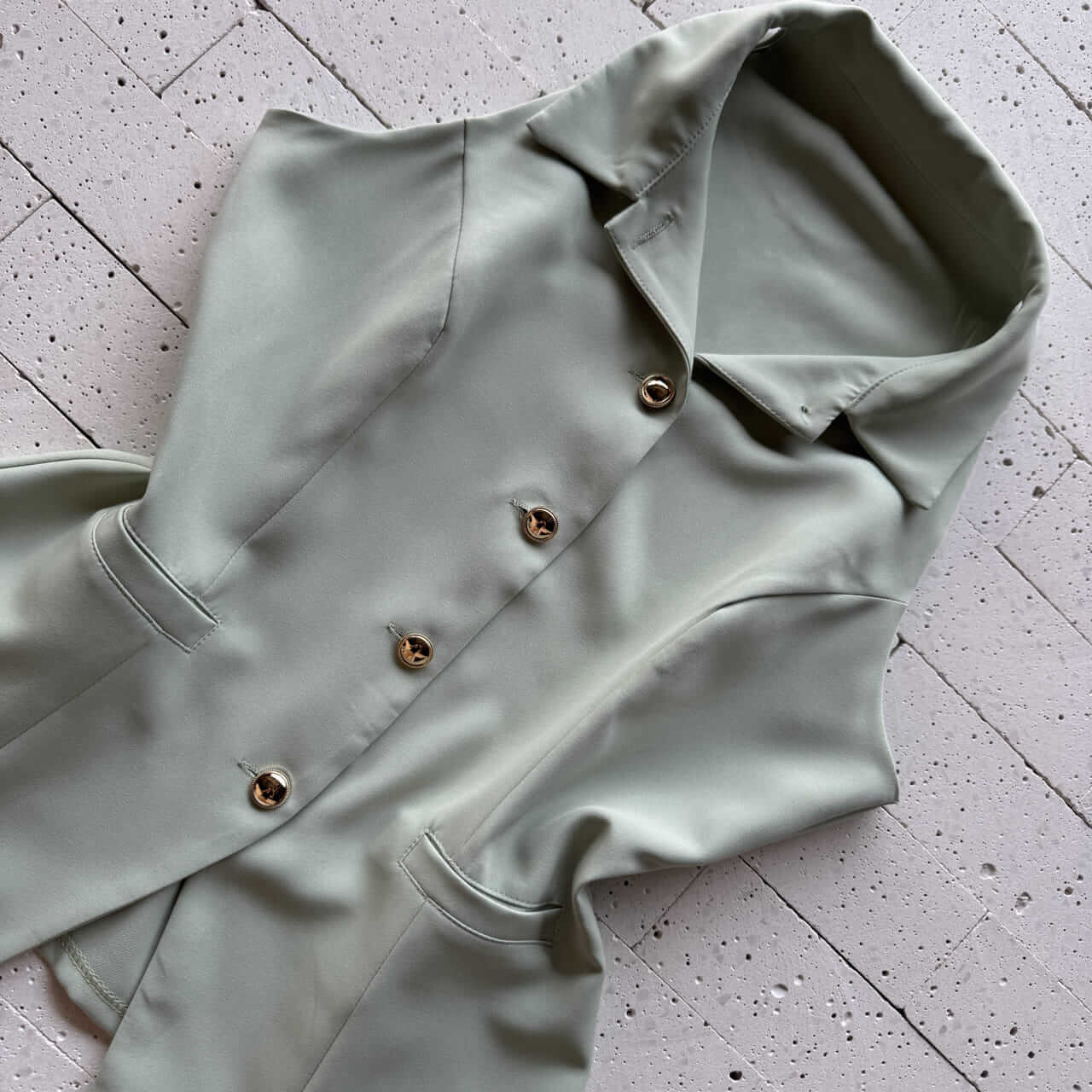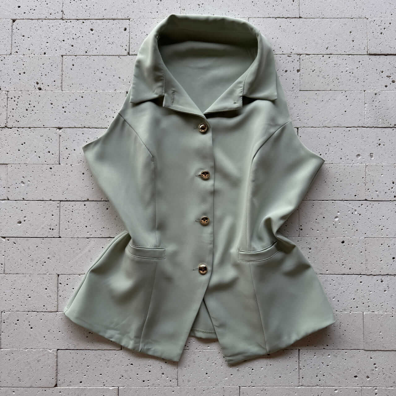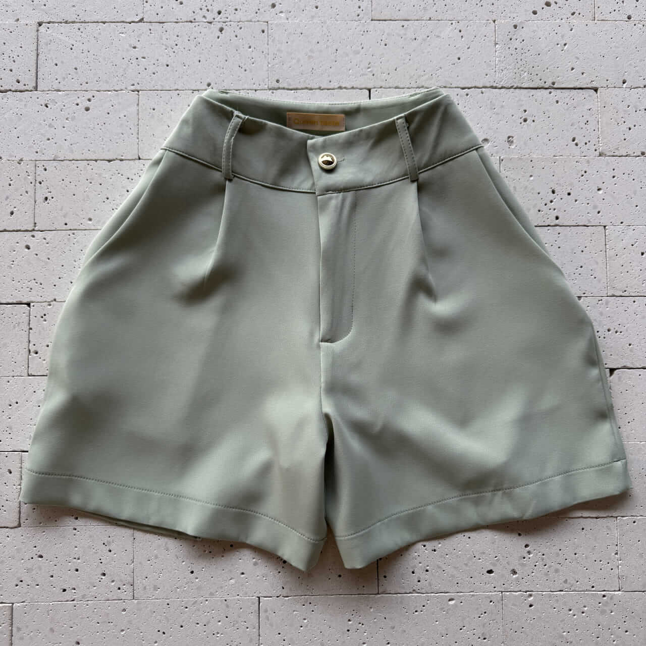 CONJUNTO ALFAIATARIA BLUSA GOLINHA E BOTÕES E SHORT VERDE – Elegância Atemporal com Toque Moderno