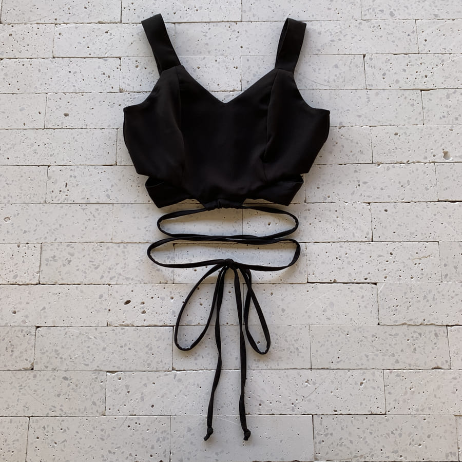 Escolha seu Conjunto Alfaiataria Cropped Amarração e Short Preto com nosso PROVADOR VIRTUAL