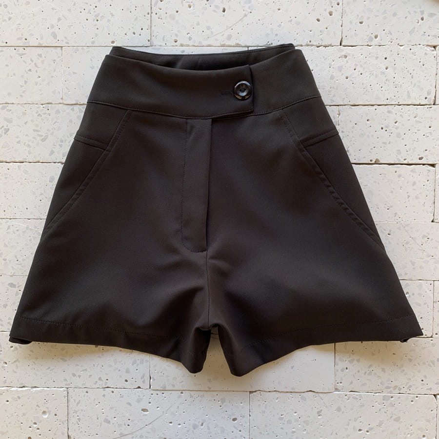 - Short apresenta abertura frontal com fechamento em botão e zíper resinados funcionais;