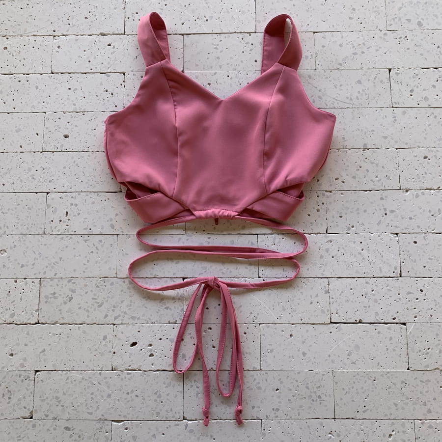 Escolha seu Conjunto Alfaiataria Cropped Amarração e Short Rosa com nosso PROVADOR VIRTUAL